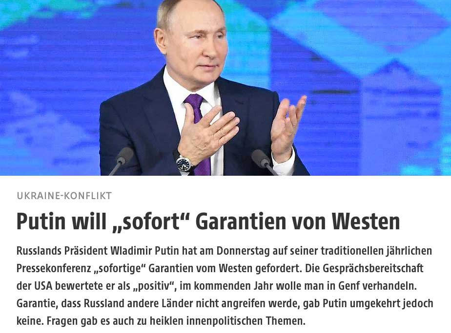 Jahres-Pressekonferenz P. in Moskau. Doch ganz einfach. Was haben wir da zu suchen. Etwa die Russen an der Grenze der USA und Mexico, wenn da humanitäte Probleme gen Himmel stinken?