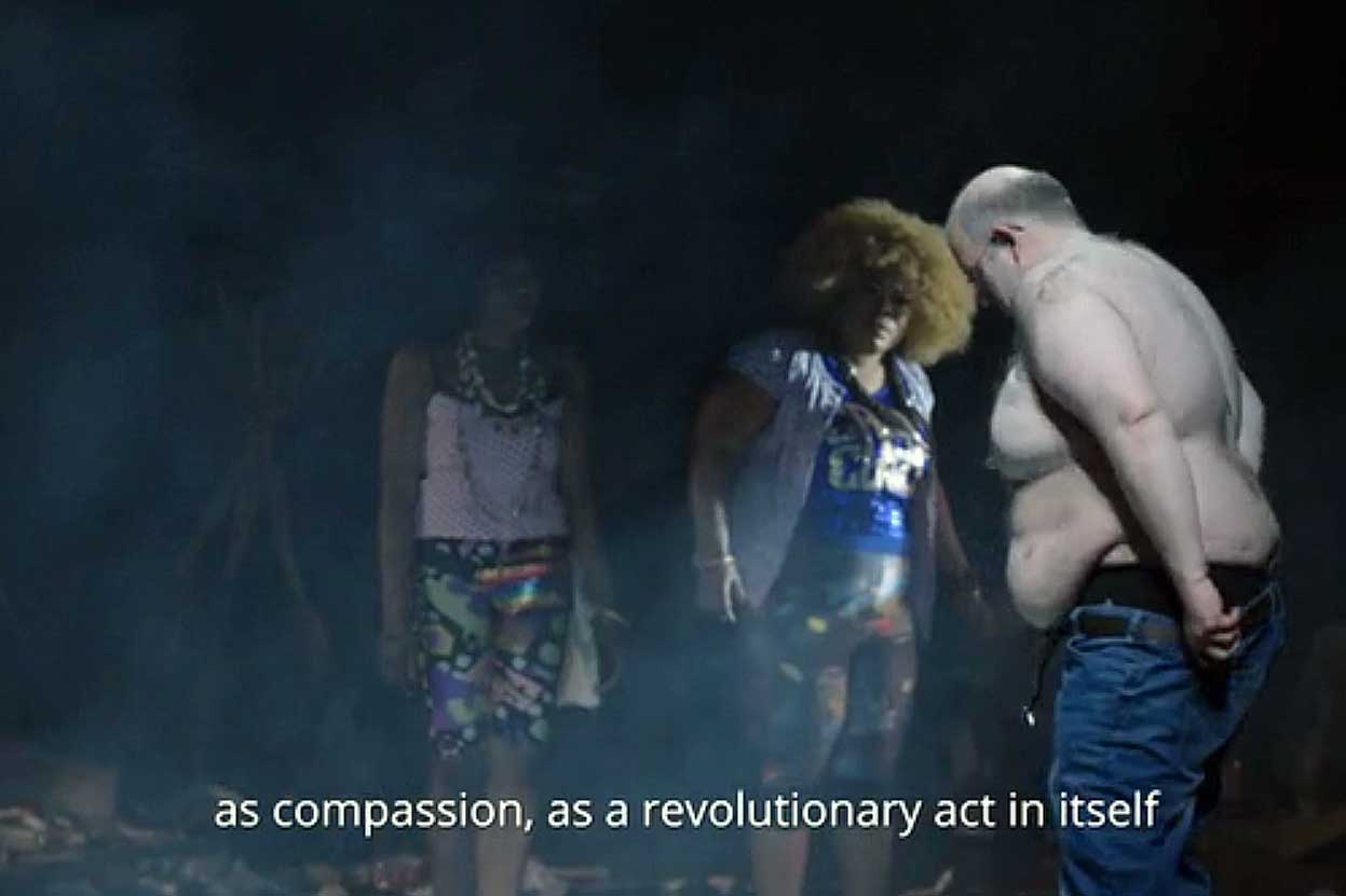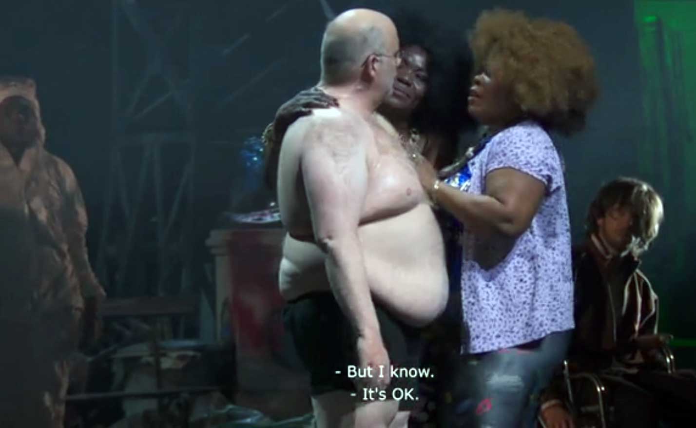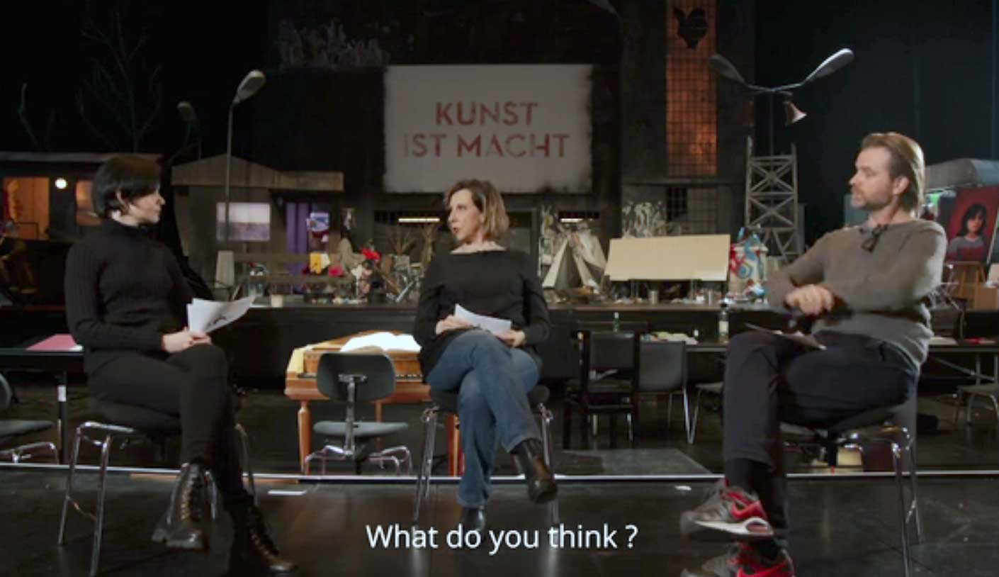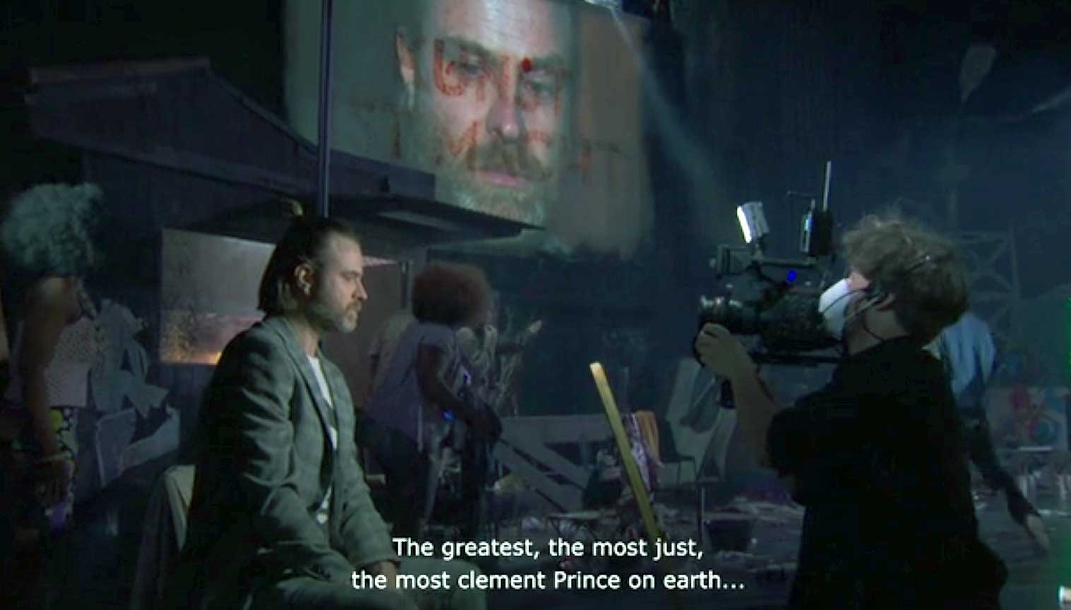 die Aufn. von dem Bühne auf dem Schirm dahinter live