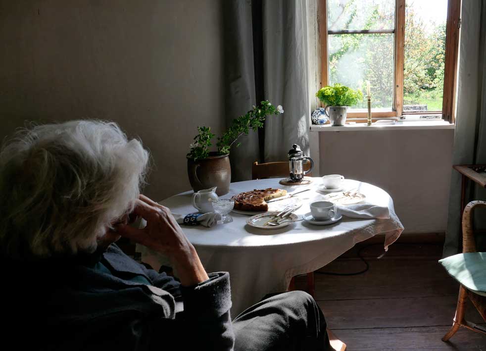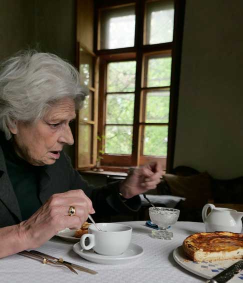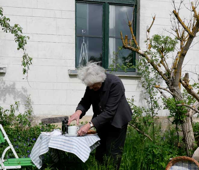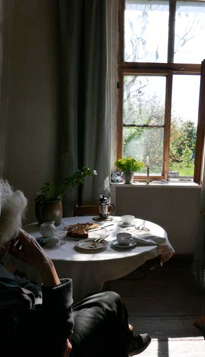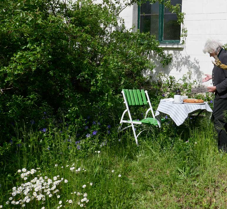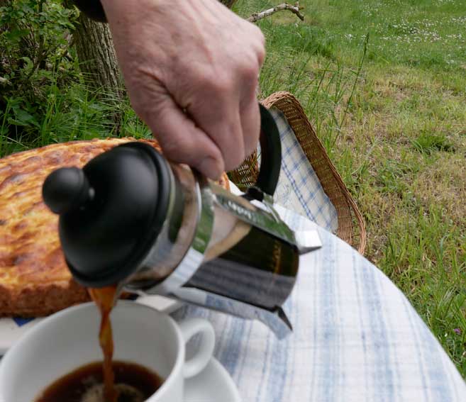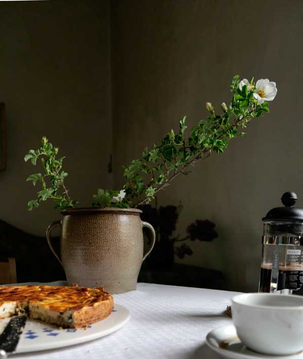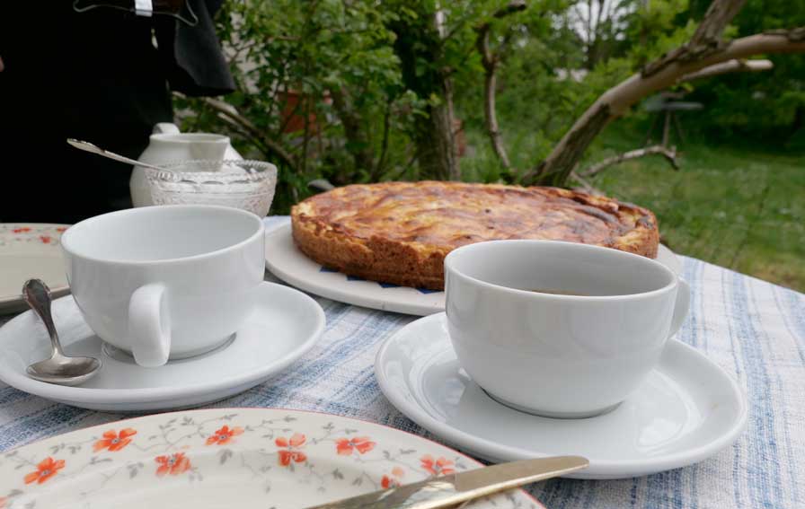 eben noch war alles gut zwischen Blumen blau und weiss und der Kaffee schwarz und heiss