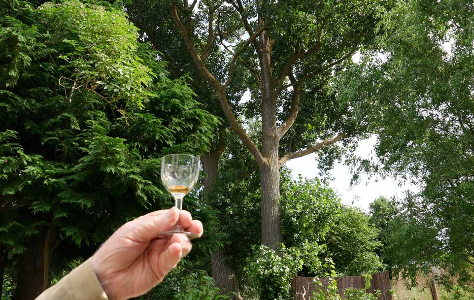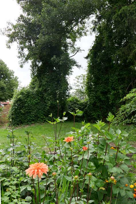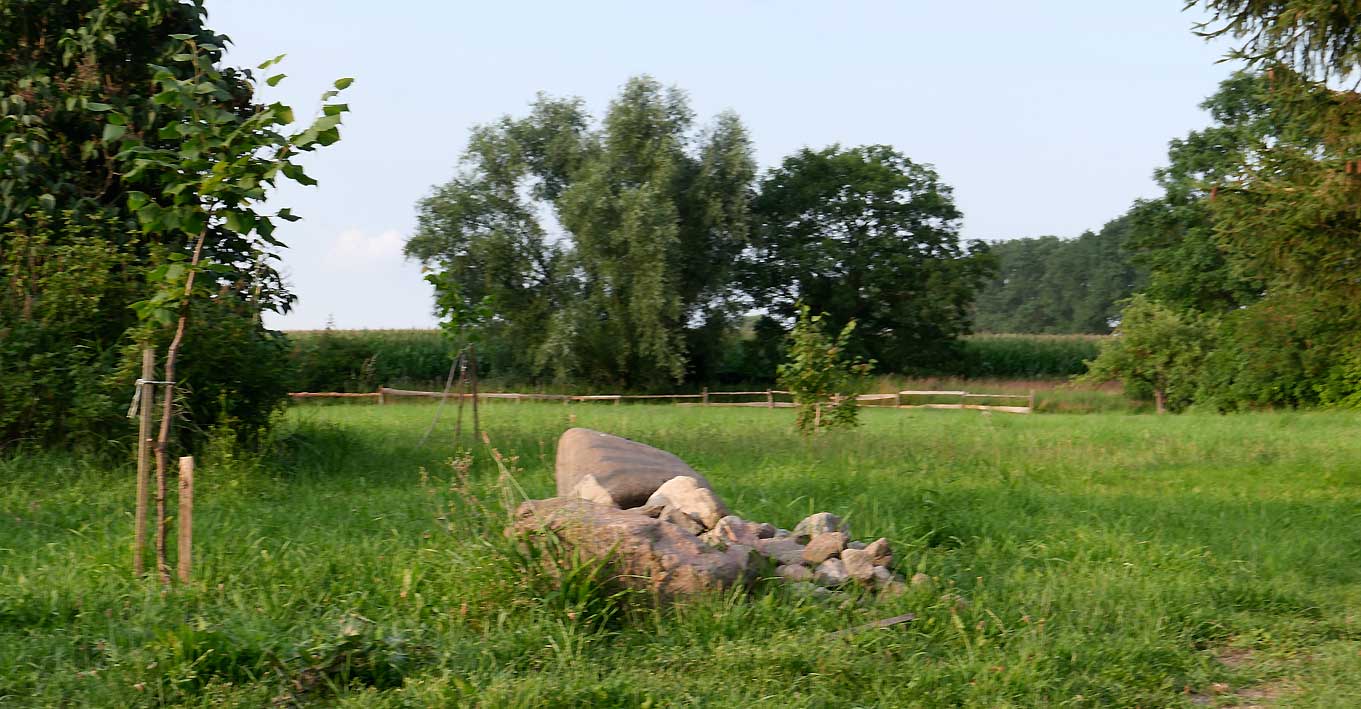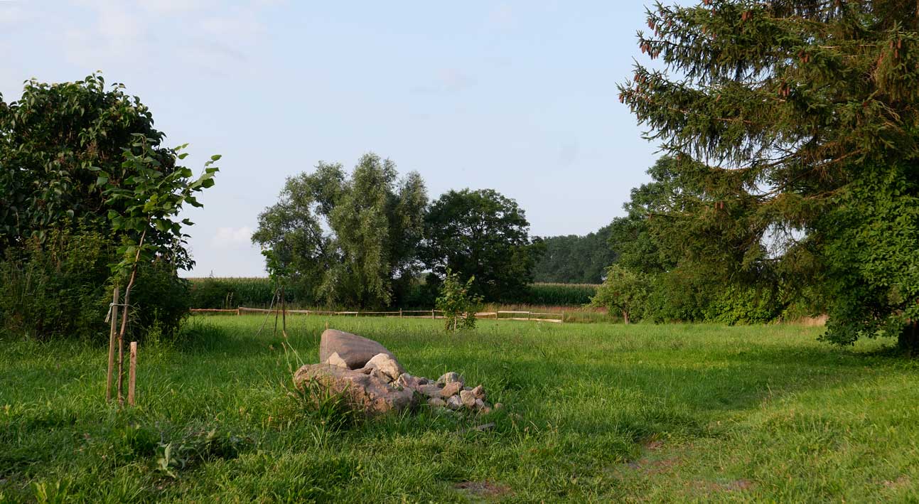 der Blickam Abend hinaus -neu gewonnen nun hier - in Feld, erfreut die Weiden und Eschen und den Zaun wie Pappeln und die neugepflanzten Linden vorne. Vor dem Gestein auf dem nun alles wieder steht.