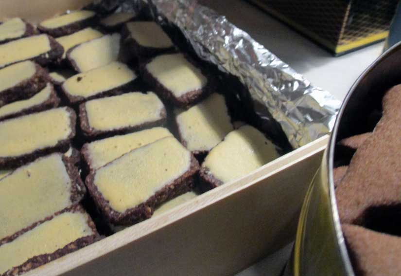 selten schicken wir was davon mit der Post wohin, diesmal kam es zurück als "Dank, dass wir teilhaben dürfen an dem singulären wien-münchener Weihnachtsgebäck. Die Menschen summen, während sie davon essen + die Katzen werden schon vom Duft ganz verrückt"
