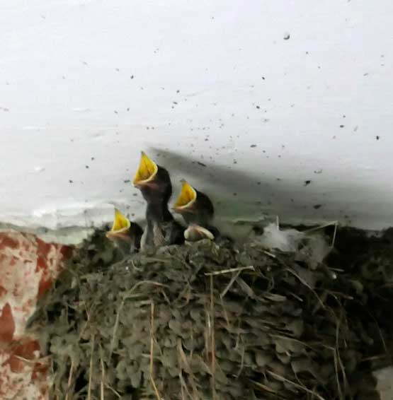 Die Schwalben aber mit der zweiten Brut werden gerade fertig mit uns zum Abflug in zwei Wochen, wie sie anfingen mit uns wir im Mai zum ersten Versuch im Haus hier. Gutes Zeichen.