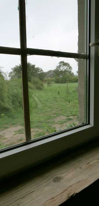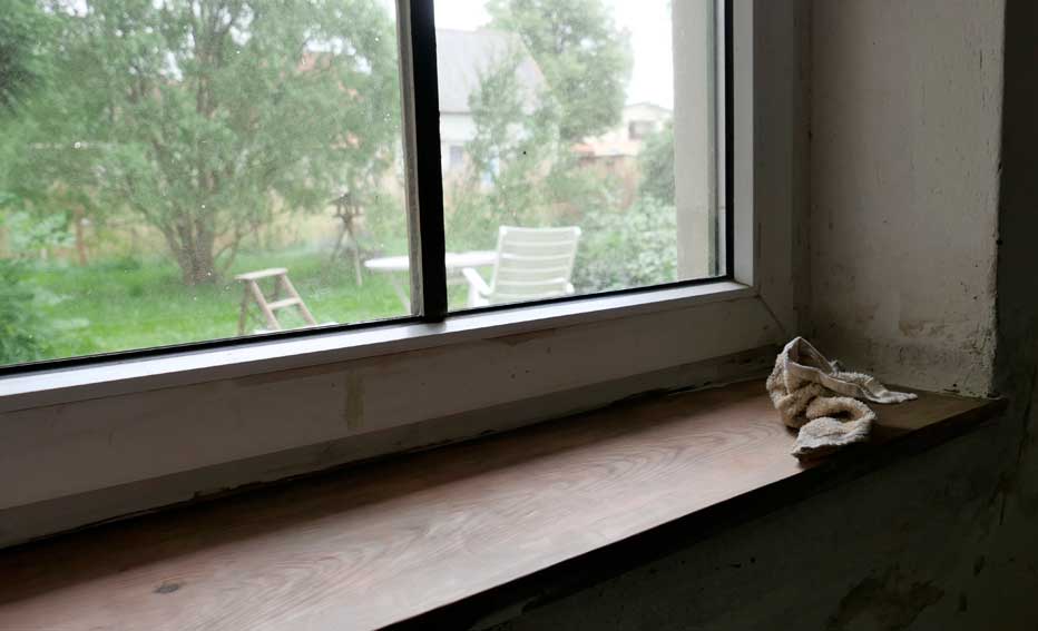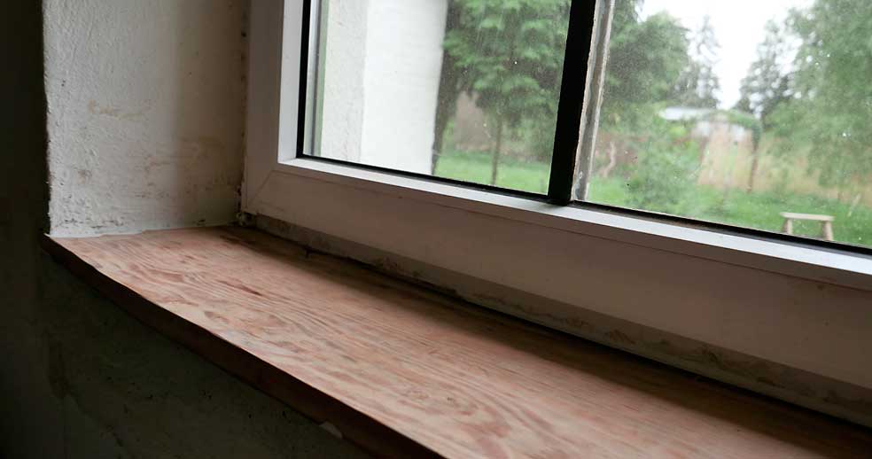Drei Fenster nun auch mit naturlichem Holz, alt, als Fensterbretter versehen