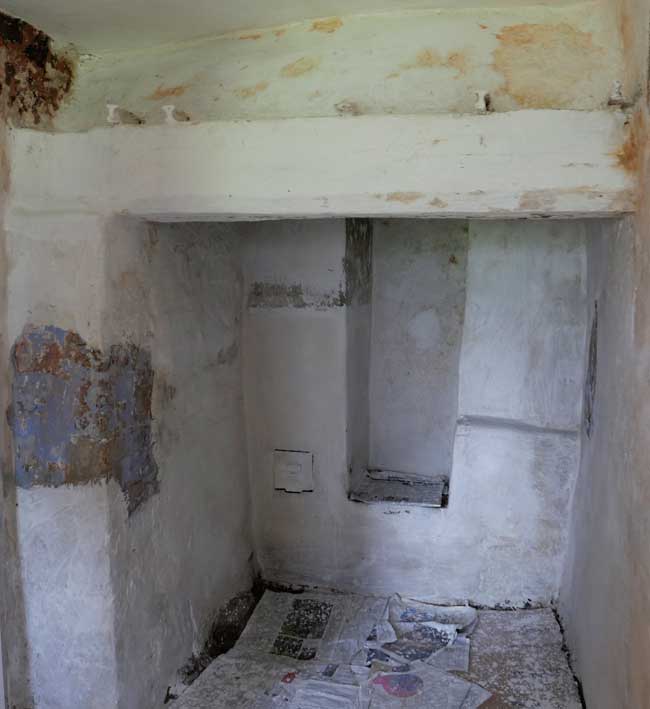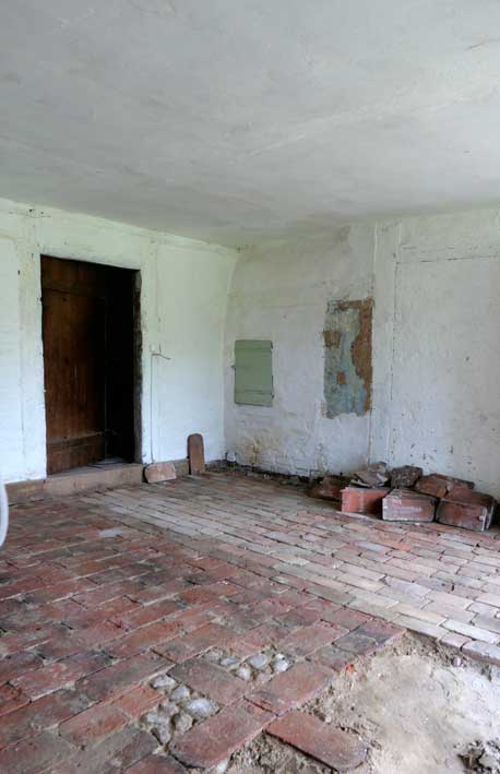 Der alte Kamin vor 250 Jahren. Dann zugemauert mit zwei Schornsteinen als Abzügkänal und, als alles unten geschlossen war, zu einer DDR Kochmaschine umfunktioniert