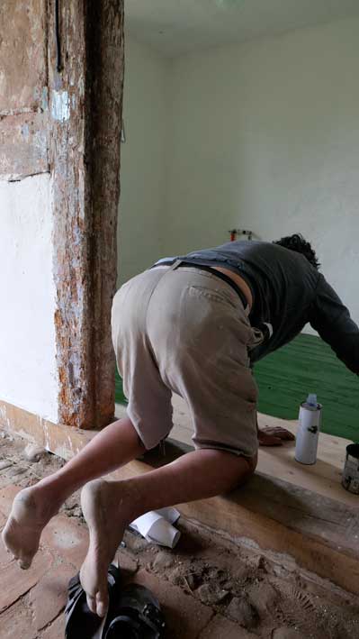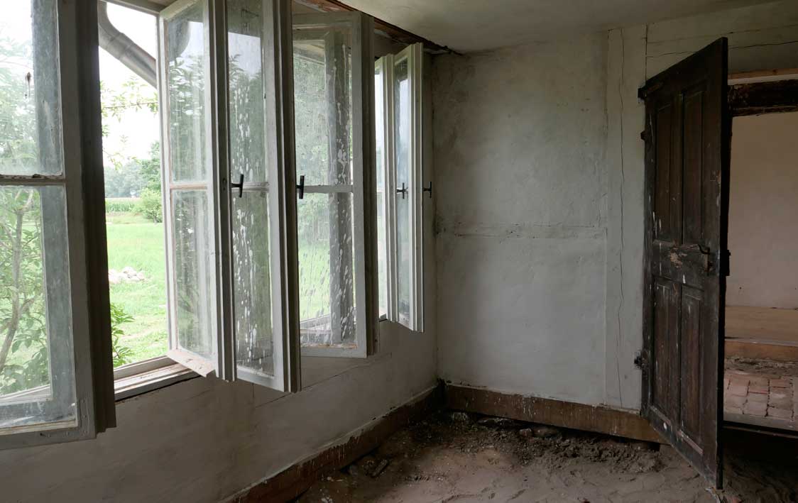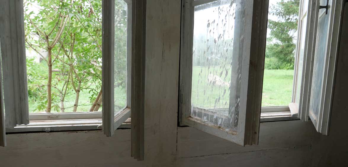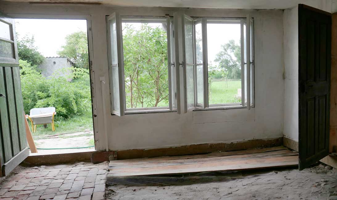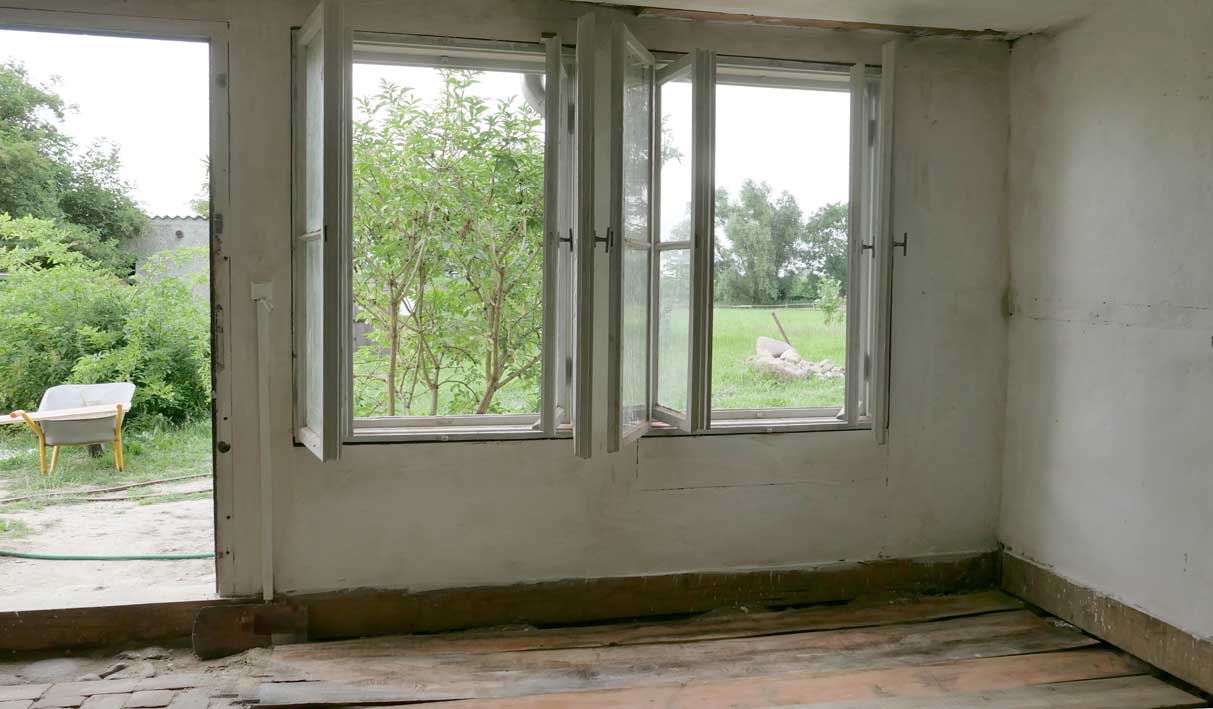 die Fenster nun luftig im hellen Rahmen von Holz und Lehm und Kalk
