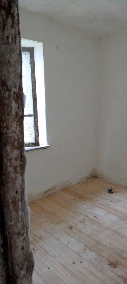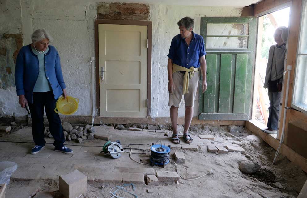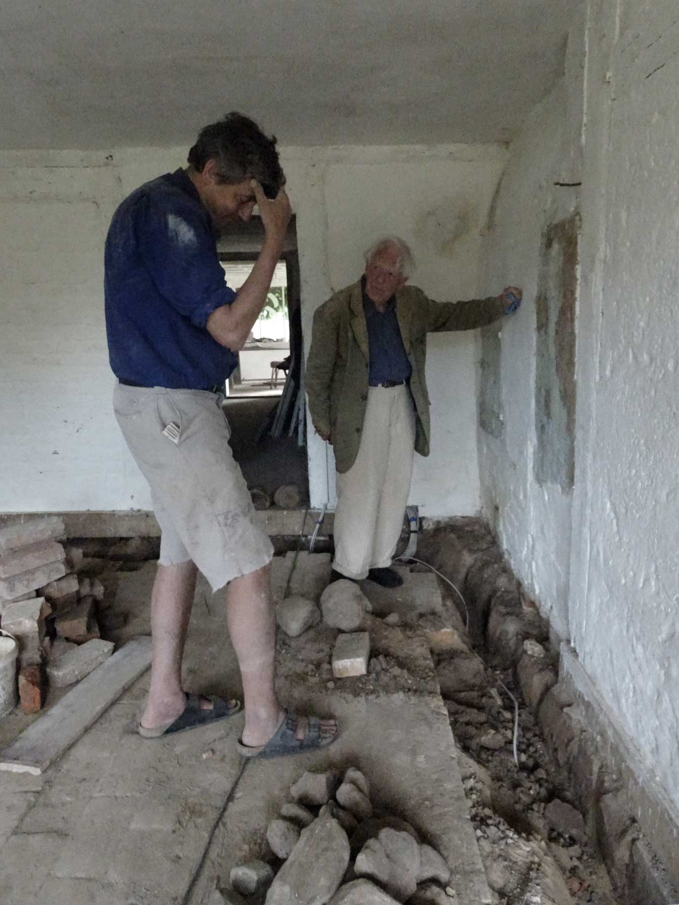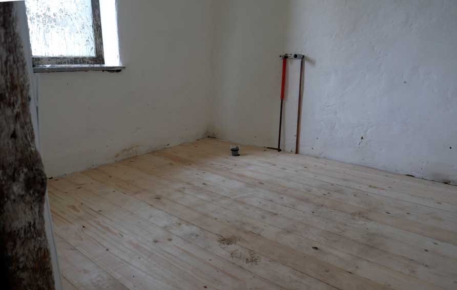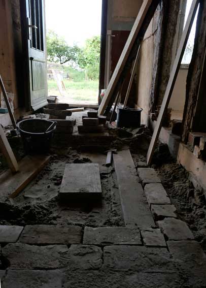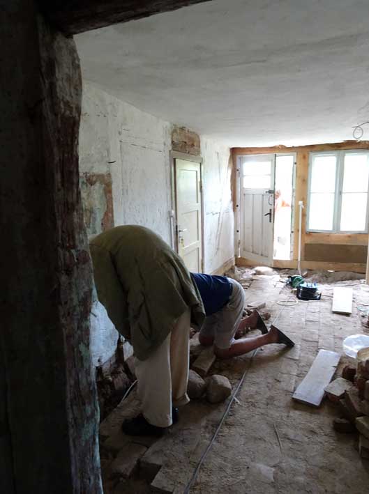 Ziegelsteine vorher. davor Lehm, und Steine des Feldes davor. Verschiedenen Räume mit verschiedenen Böden wurden einer. Was jetzt.