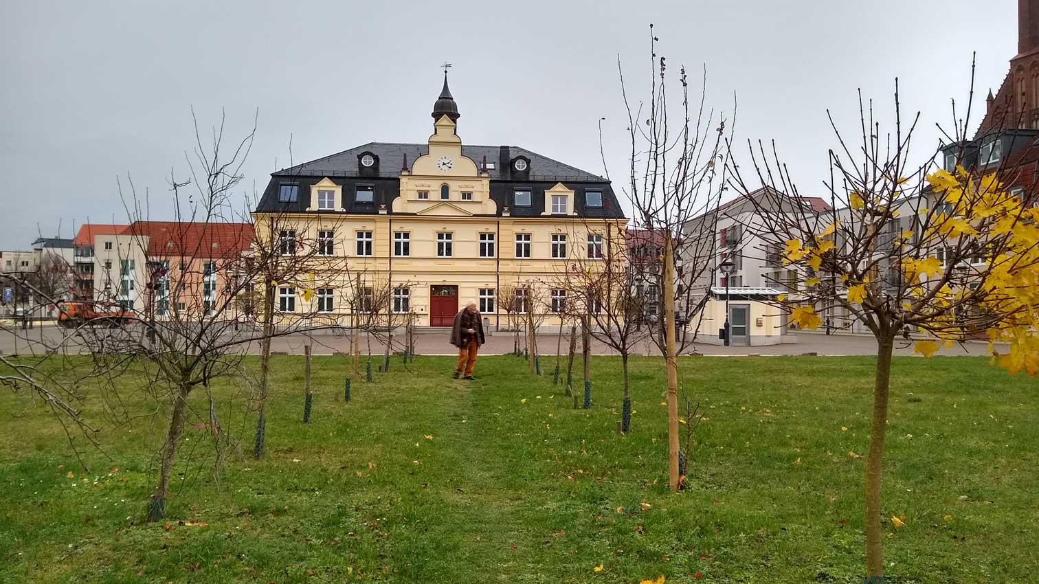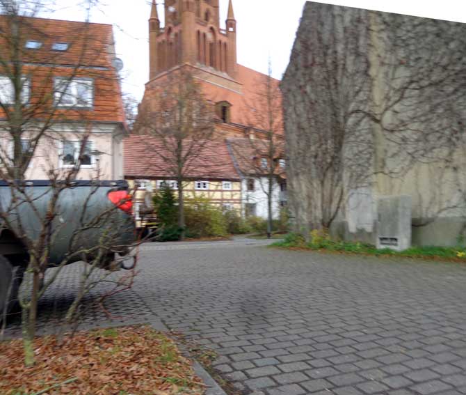 Angekommen und als Parkplatz die ehemalige Kirche der Katholiken und dann zum Kino umgewidmet zum Rapport beim nun neuen Bürgermeister zu berichten was der Film zu Demmin wohl werden wird.