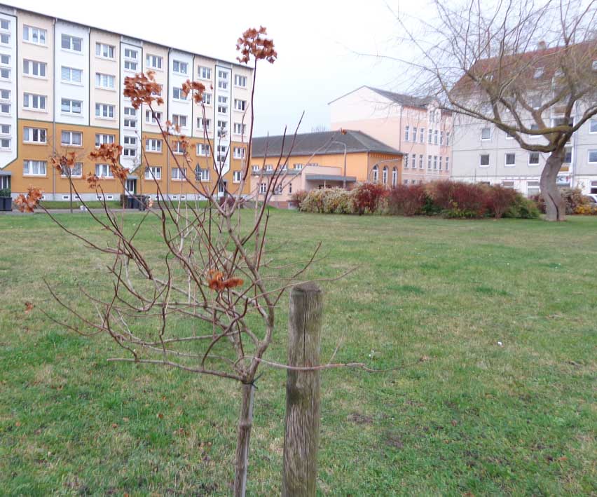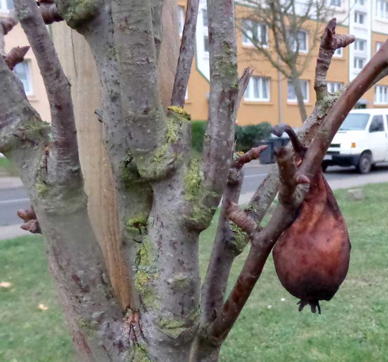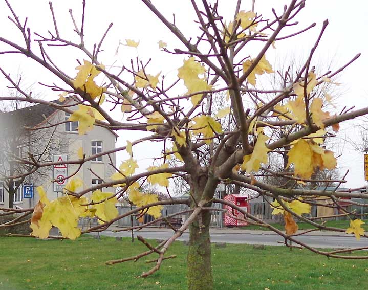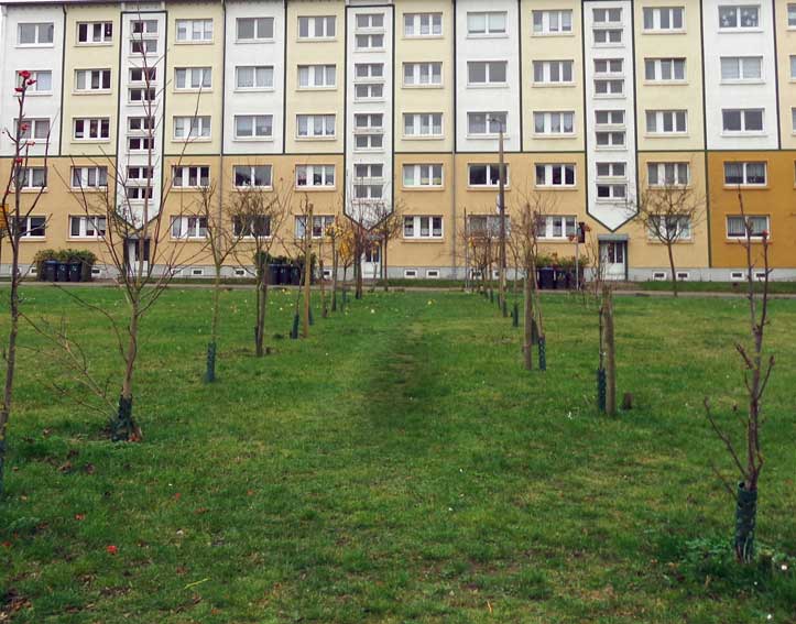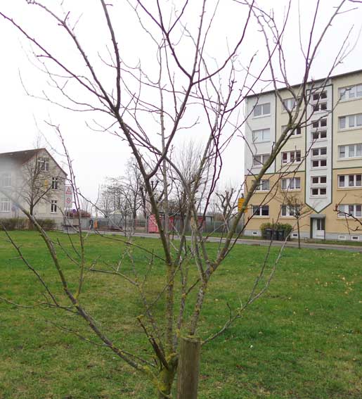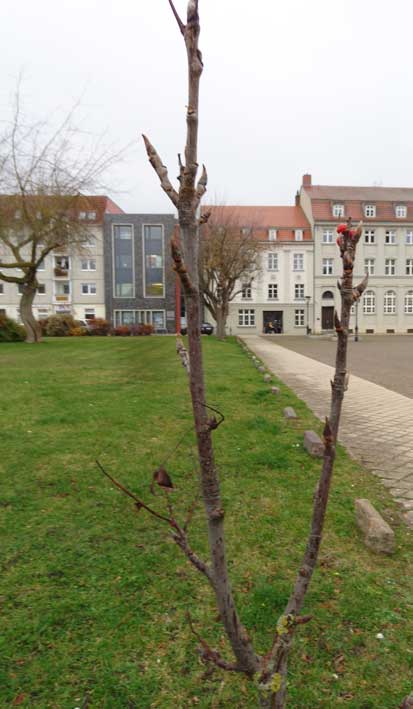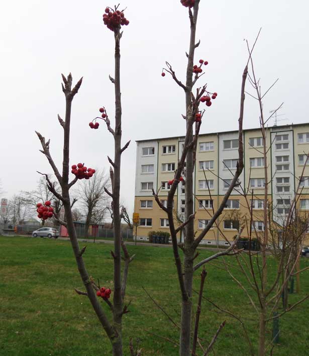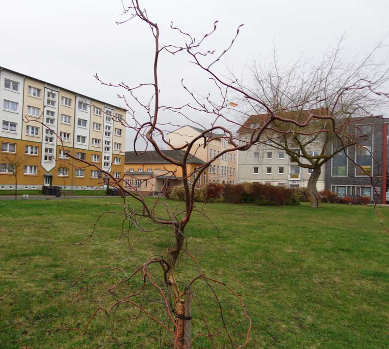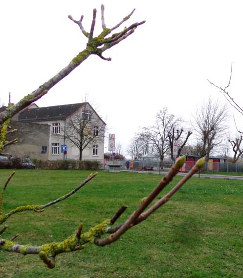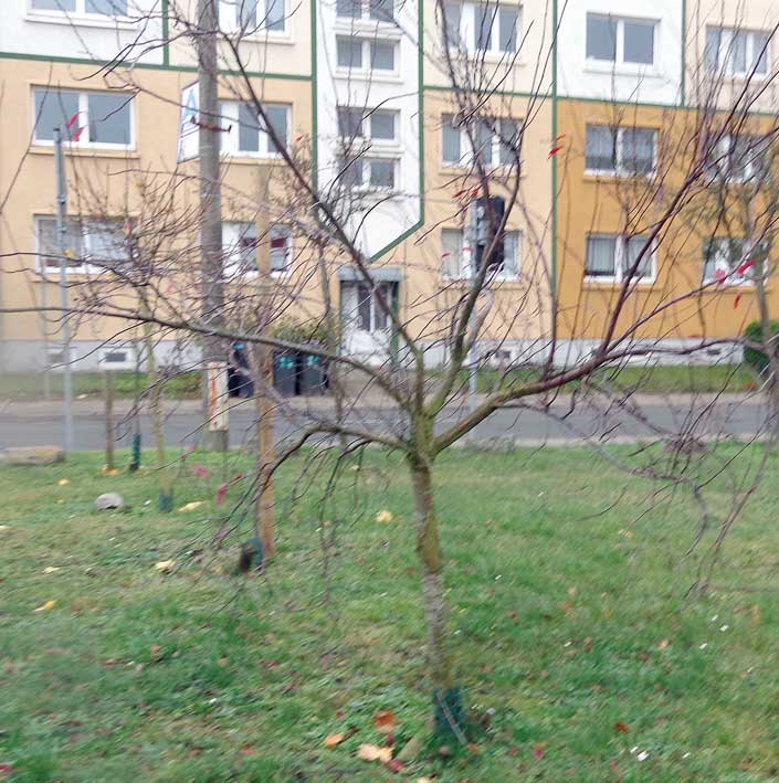 selbst in ihrer skelettierten Fassung, machen die Bäumchen aus den Häusern dahinter noch Individuen, zumindest in den Teilen wohin wir sie fotografieren
