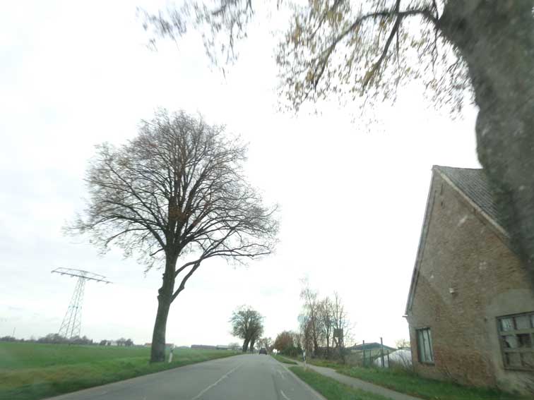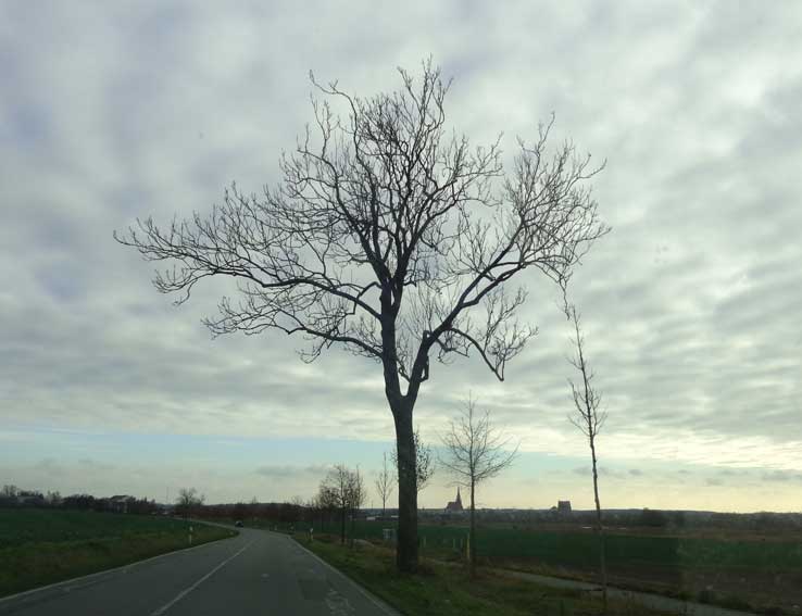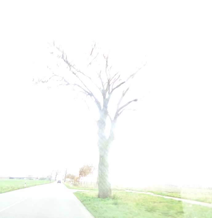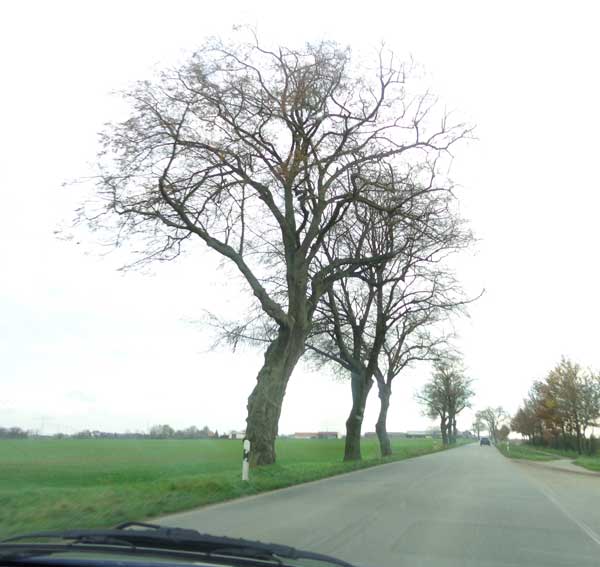 Auf der Fahrt nach Demmin wie die Bäume selbst in ihrer Reduzierung auf letzte Reste noch erkennbar blieben als das wofür sie da sind.