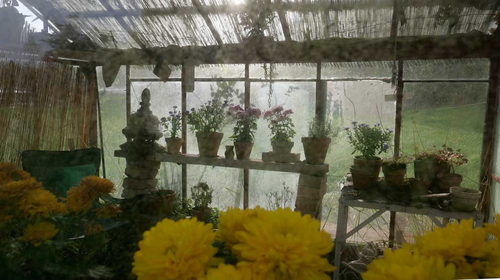 Das Glashaus wo sonst nichts wächst, nun von innen.