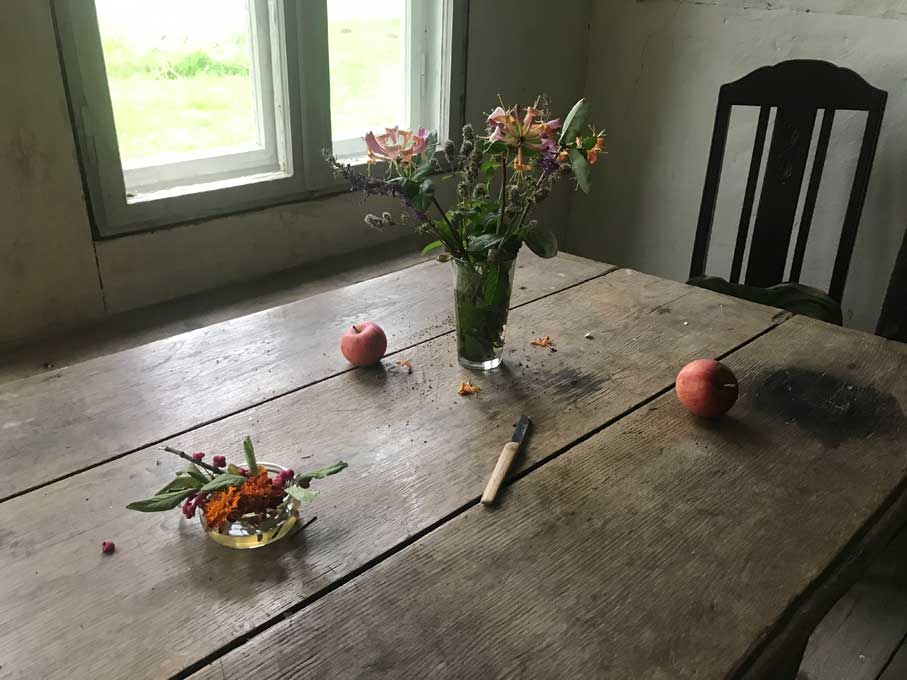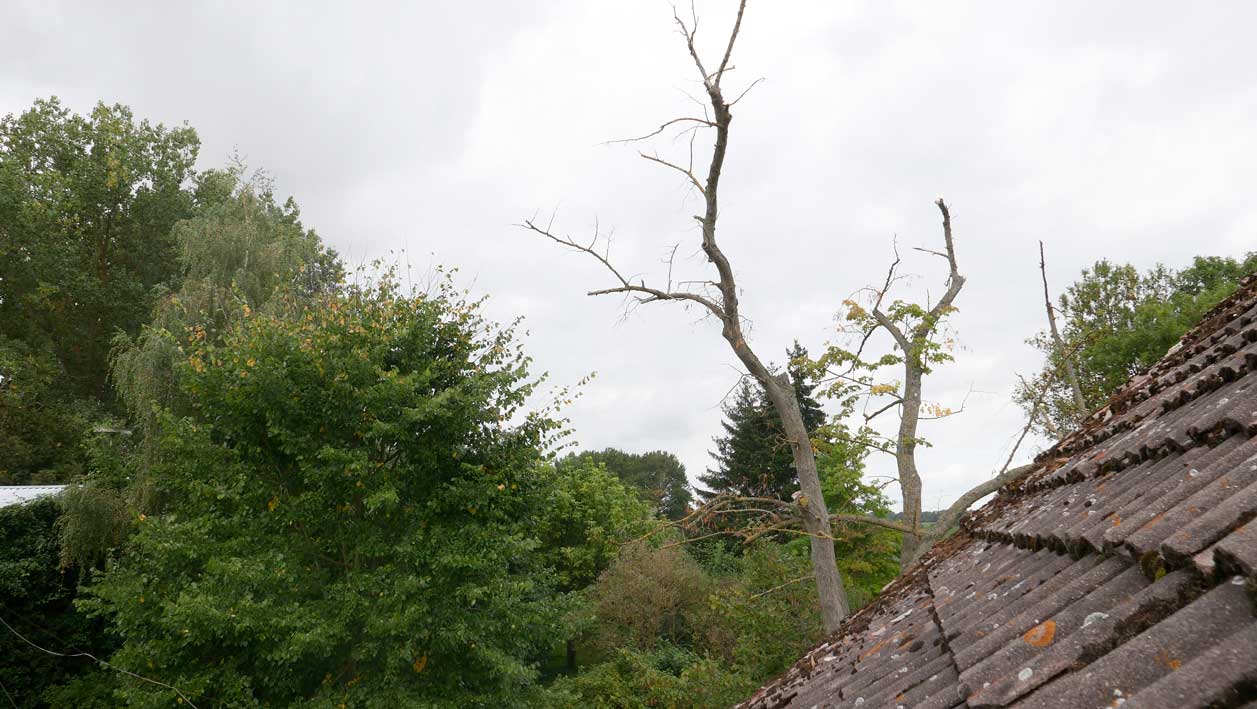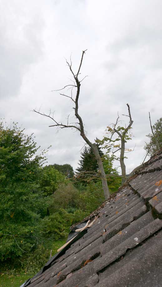 so wie sie gedacht waren für den nächsten Tag schon bereitet als der Baum über sie fiel. Oder legte er sich über das Dachgleitend sanft daneben am Haus entlang.