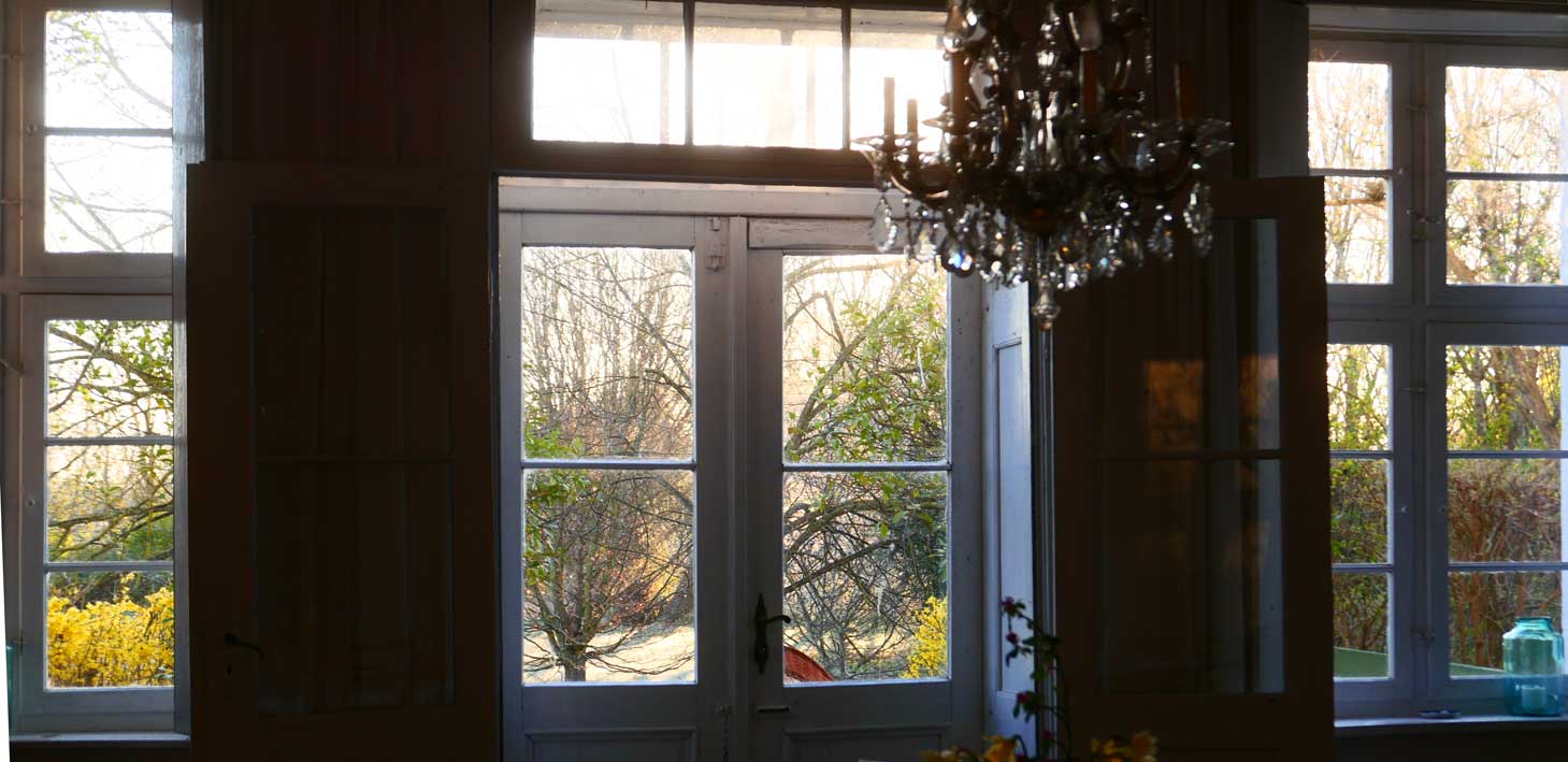 Und die Achse des Haus herstellen mit den Blicken nach vorn und hinten, durch die Fenster
