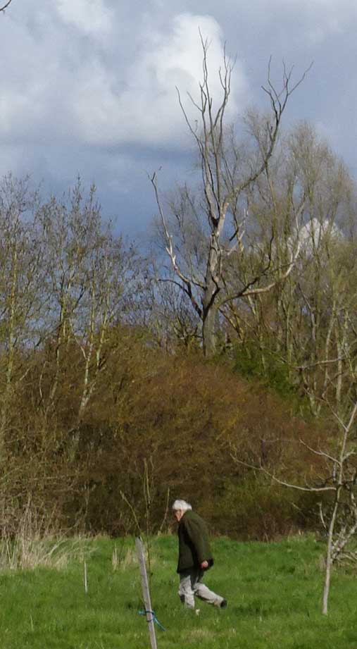 schon unterwegs, der für den Rehschutz zuständige Helfer hinten den Zaun wieder schliessend.