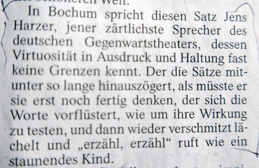 was hier geschah, gehört nicht nur zur Realisierung eines Wortkunstwerks in die vergegenwärtigten Sichtbarkeit, sondern ganz einfach zur Geschichte des Theaters, wenn man über unsere Epoche sich erinnern will. Sondern als Wunder sonder Gleichem.