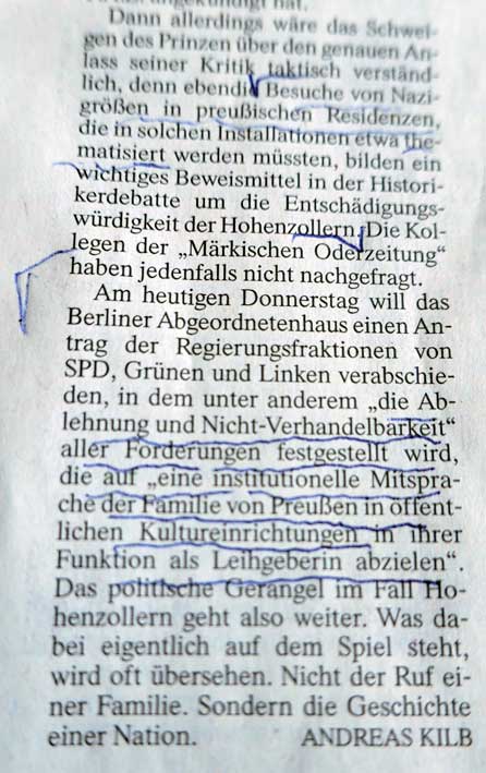Was die Bomben der anderen übrig liessen, abgerissen von den eigenen Leuten. Und als das Hauptschloss, ohne je einen Hitler gesehen zu haben, wieder aufgebaut, wurde mit deutlicher Verdammungen jeglichen Inhalts preussischer Erbauer, selbst den jetzigen Namensgeber Humboldt tunlichst meidend, was noch. Die demokratischen Gremien nehmen Rache an ihrem Geschick. Indem sie ihren Schuldigen gefunden. Jeden Tag von Neuem.