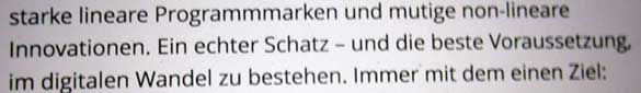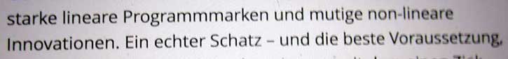 Dafür also steht der Neue Mann für Kultur im BR mit neuer Intendantin. Das liest sich kompliziert, übersetzt heisst es für uns gerade richtig. Und Bayern als Teil von Arte will es in Arte auch