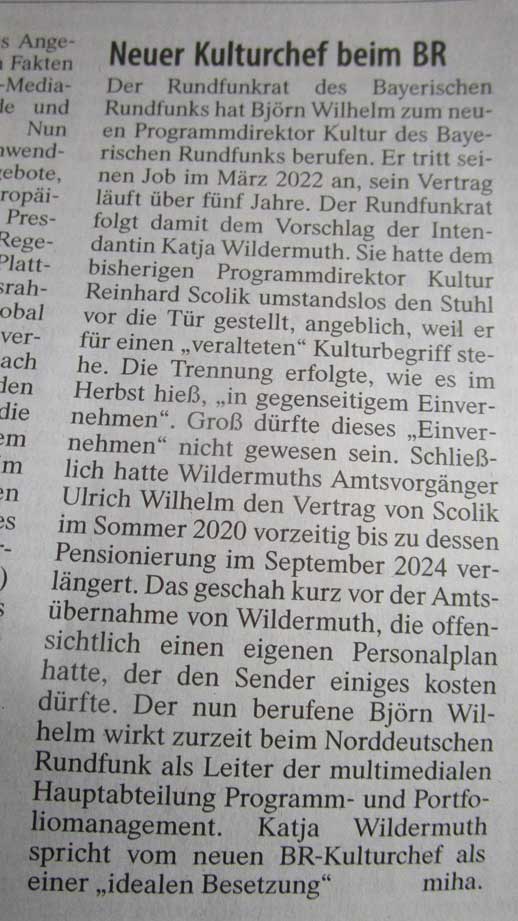 Seit Kurzem gibt es im Bayerischen Rundfunk einen neuen Kulturchef, der für Innovatives, also Neuerungen