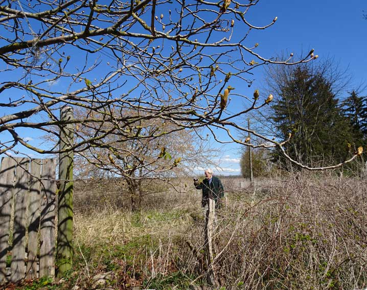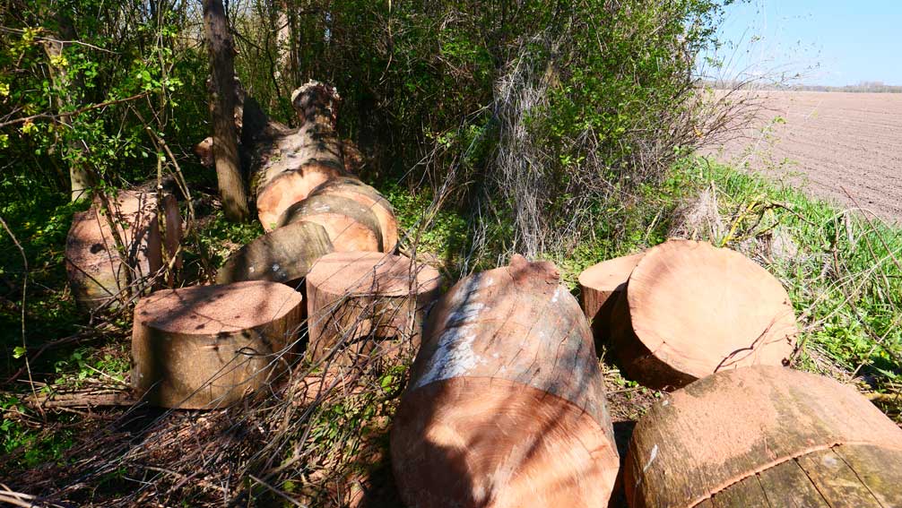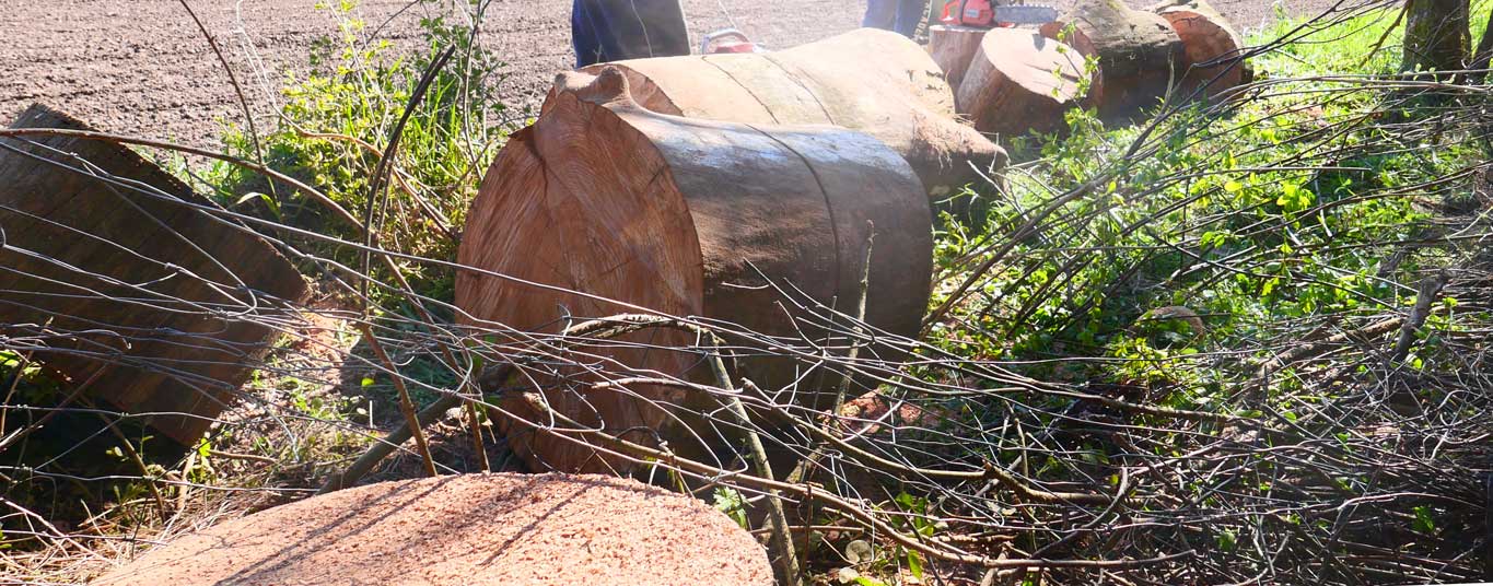 und da sind sie schon die gestürzte Ulme klein zukriegen und so den Zaun wieder hochzuziehen damit die Rehe da nicht durchbrehcn in unsere Rosen.