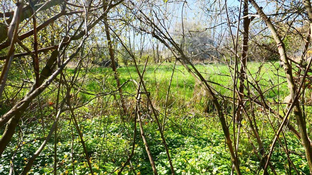 was eben noch undurchdringlch schien öffnet sich nun in Richtung Haus und früheren Park