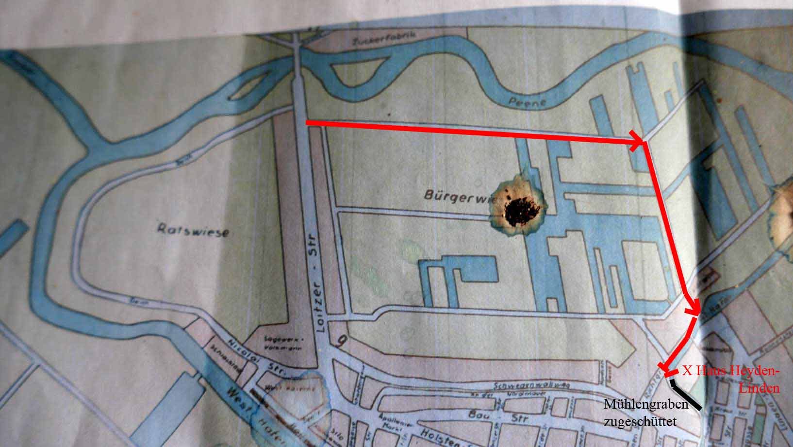 Der Zufluss in hist. PK heute zubetoniert zur Promenade verdorrt.