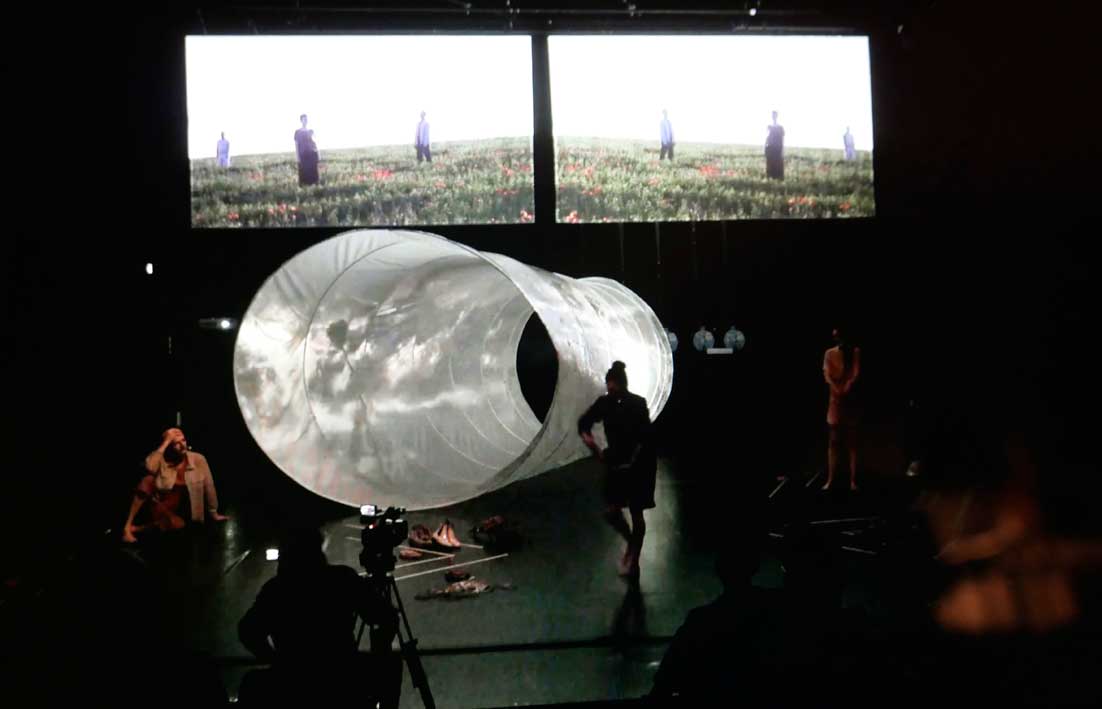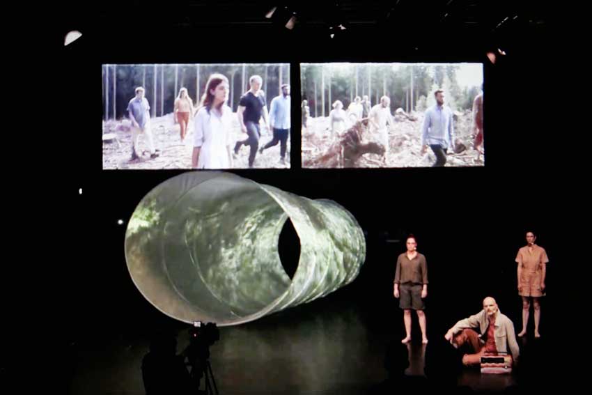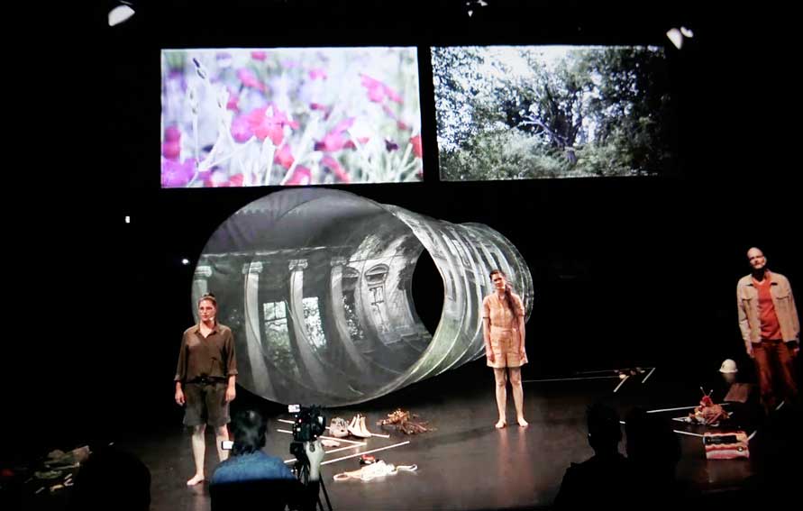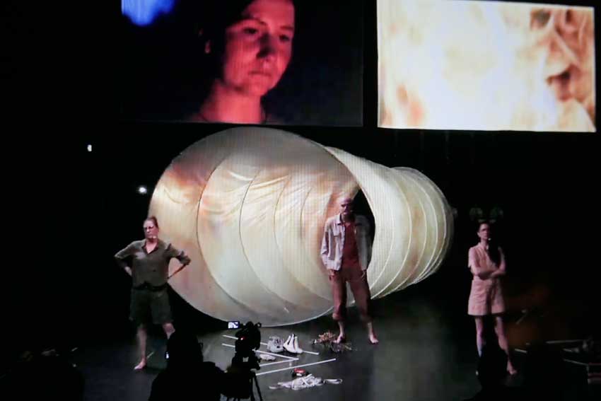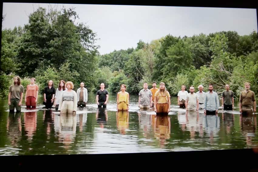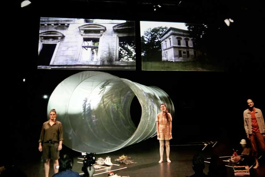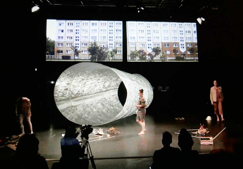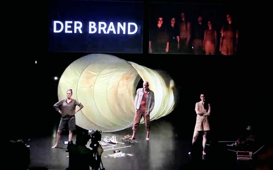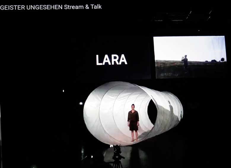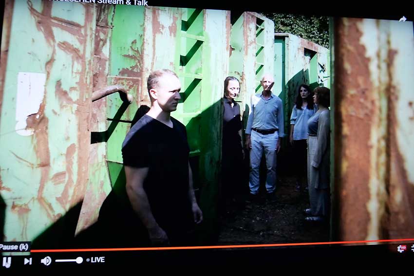 und sie tun zusammen das Aufgenommene und den Raum des Theaters nun in eins als stream, des Films mehr als Raumerleben am Ort wo das Theater ihrer Produktion existiert. Erweitert durch Sprache viel der Geschichten und Töne der Lieder