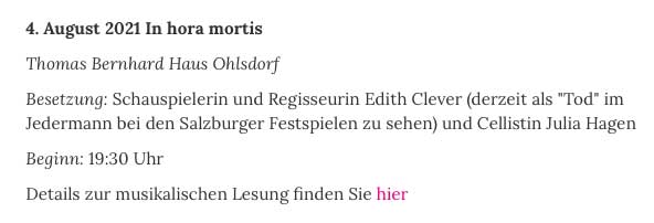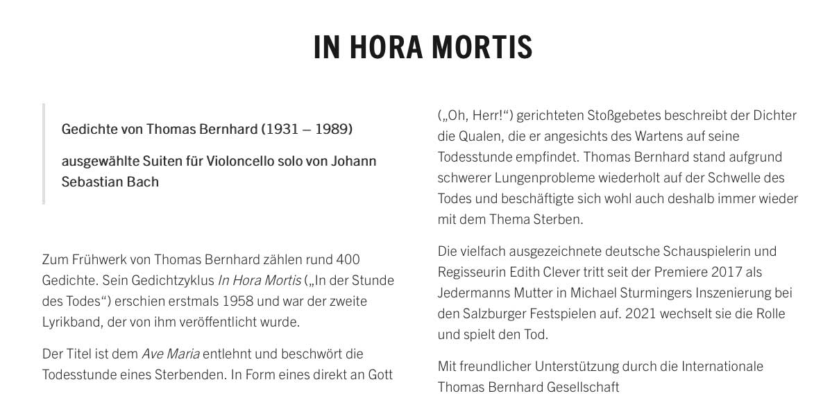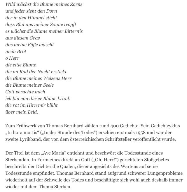 Frühe Gedichte von Th.Bernhard gab er heraus unter dem Titel in hora mortis /in der Stunde des Todes. Lange verschwiegen von ihm, dann am Ende wieder erkannt. Davon konnte er die Häuser nicht sich bauen denen sie nun gewidmet sind.