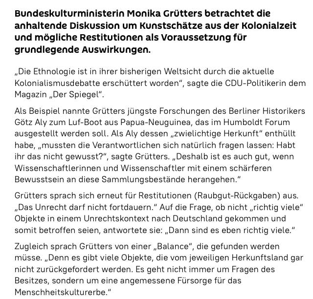 Das kann man nicht abschieben auf die Inkompetenz der leitenden Fach-Riege. Was seit Monaten überall zu lesen ist und an den Wänden der Medien-Schirme steht. Sie wollten ihre Geschichte verleugnen und im eigenen neuen Haus der alten historischen Repräsentanz die Verantwortung auf der Ebene der Kunst- vielleicht aus deren Schwäche,- die eigene Verantwortung nicht tragen und flohen fernab ins Allgemeine möglichst weit enfernter Kunst-Ethnien. Das holt sie nun ein. Gelächter und Peinlichkeiten, vor aller Welt, nochmal.