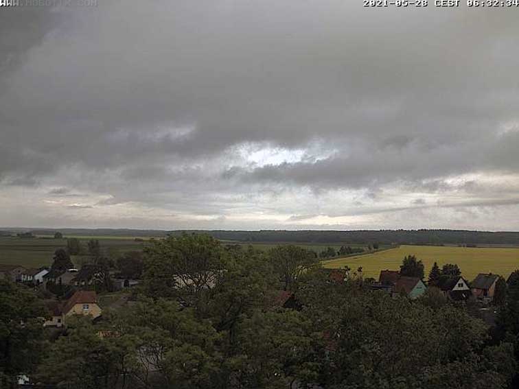 so sieht das Bild aus dem Turm der Kirche am Abend aus, Richtung Hoflage früher.