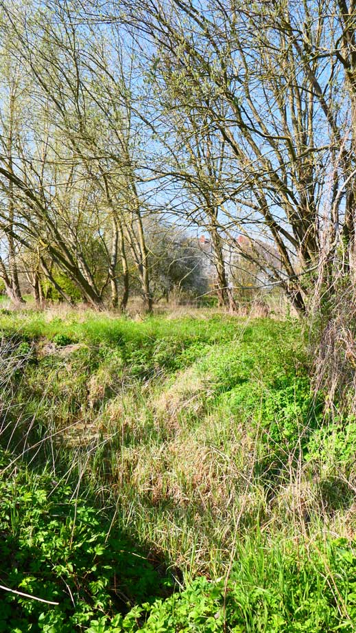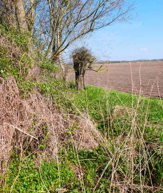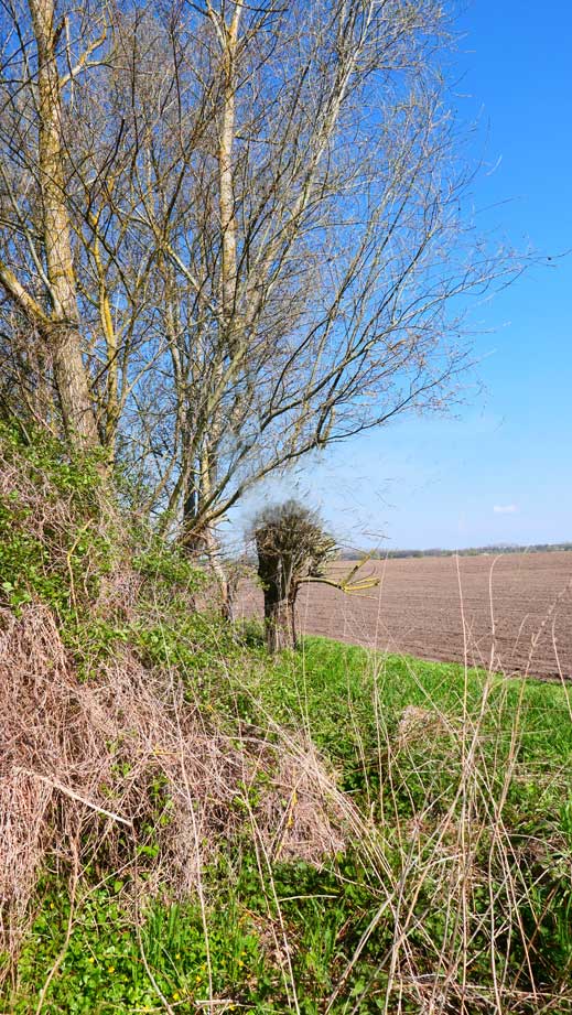 beschnitten einseitig am Feldrand nun als Kopfweide eine Markierung wenigstens hier nach alter Art.
