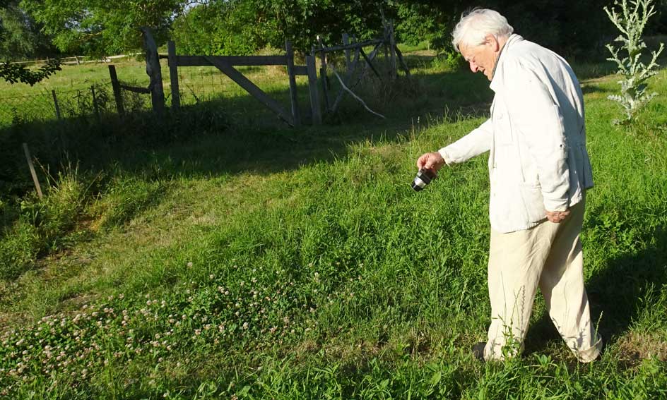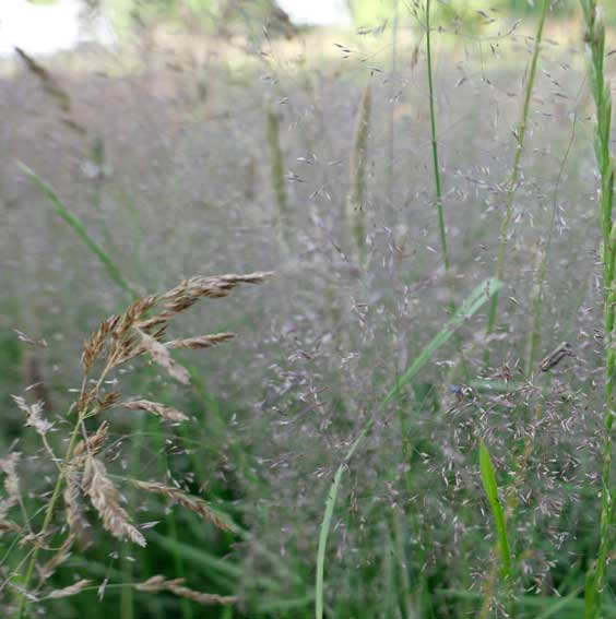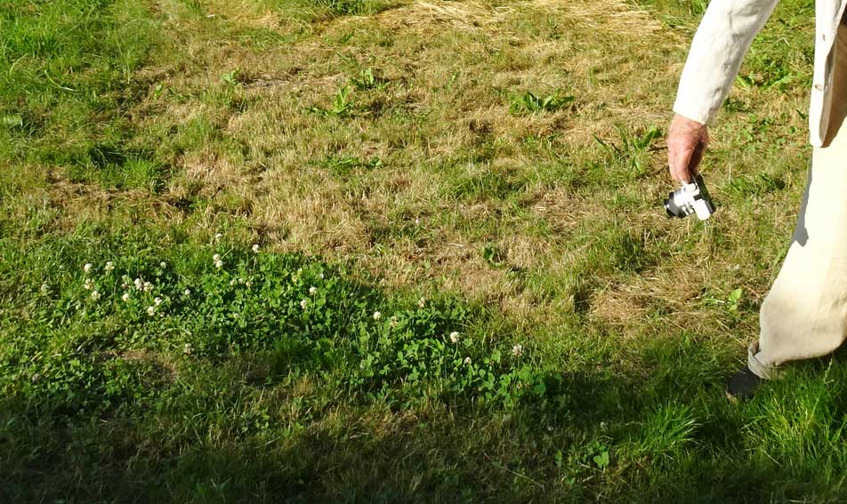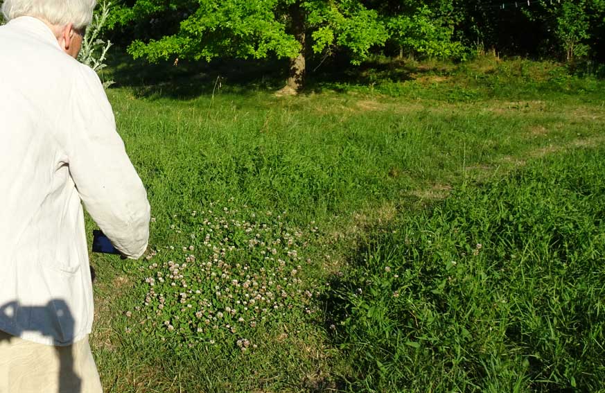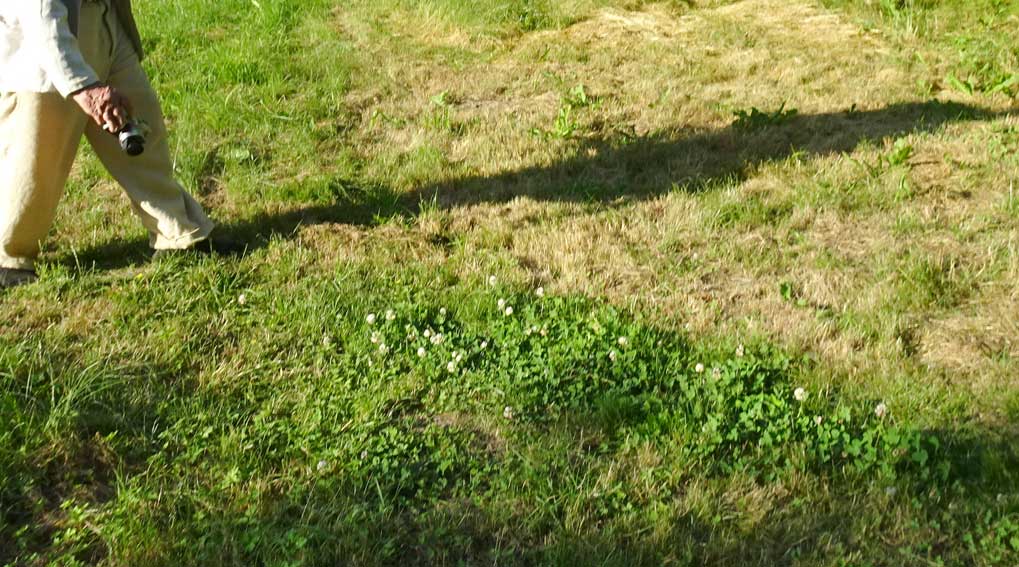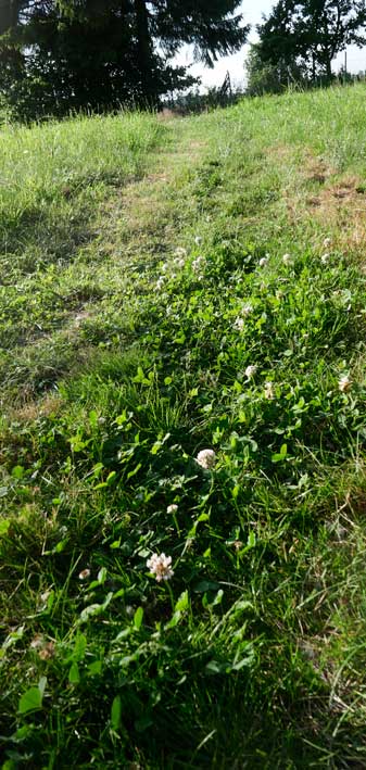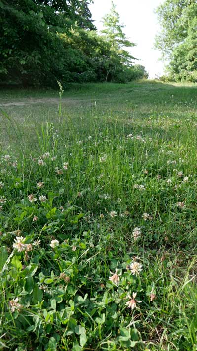 der blassen Farben des Klees und der Erd-nahen Blumen in den Sommerwiesen