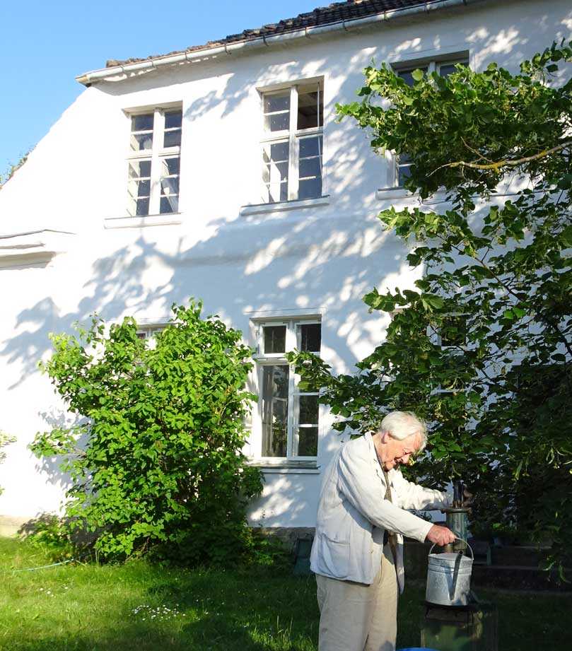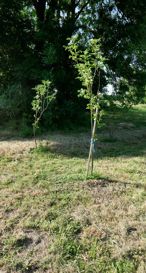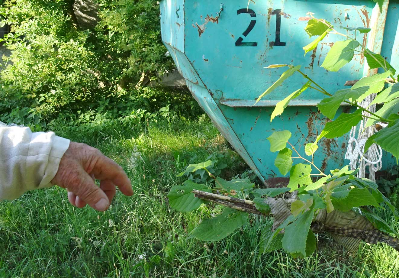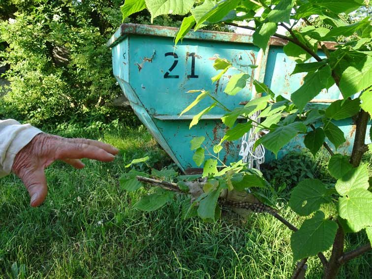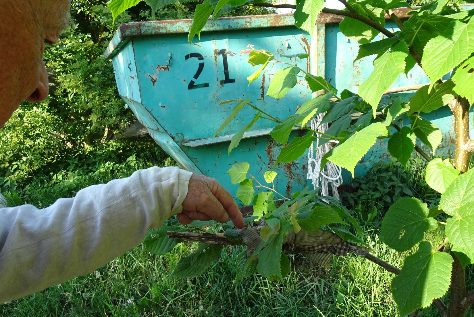 der gebrochene Ast der jung ausgetriebenen Linde, mit Lehm-Schienen versucht zu erhalten, und täglich Stunde um Stunde benetzt mit Wasser, musste am Ende amputiert werden, seine Mitte zu retten, wo es nun austreibt. Nach allen Seiten.