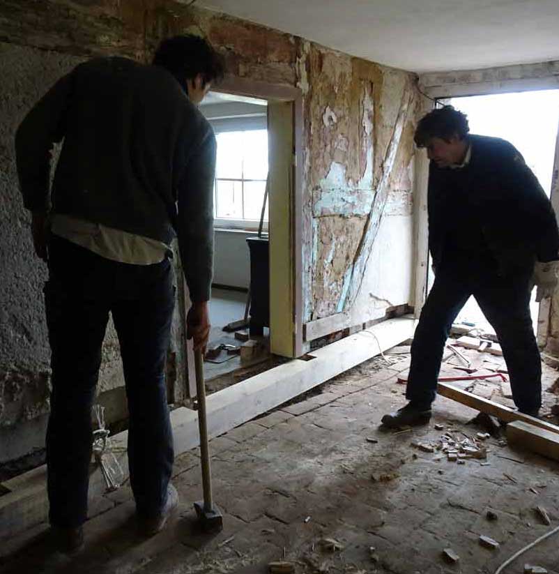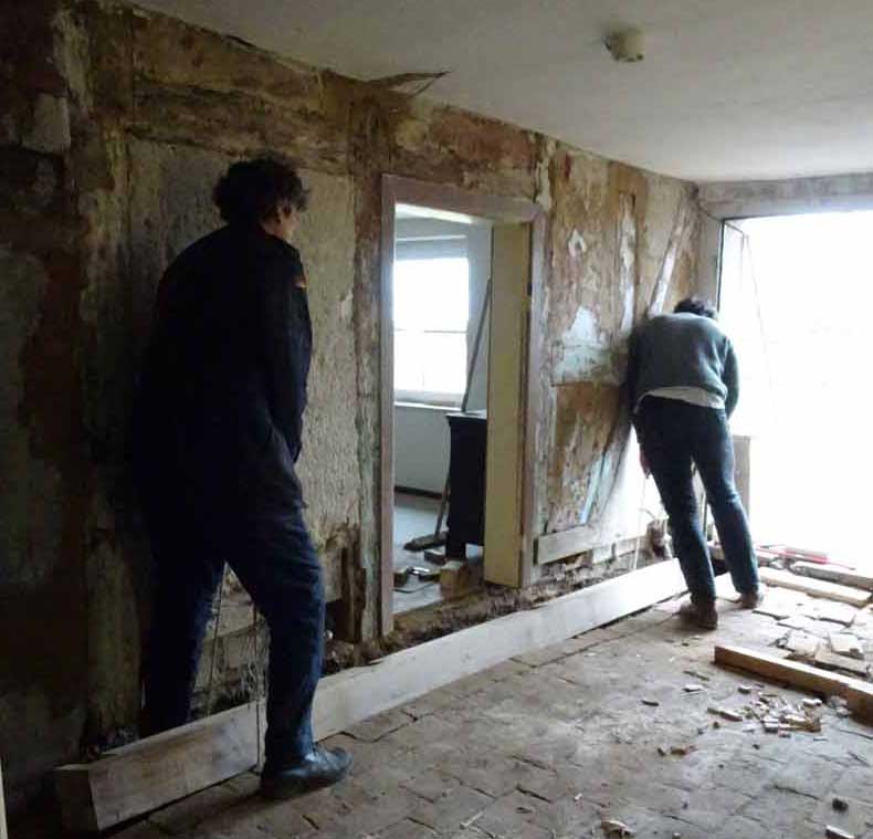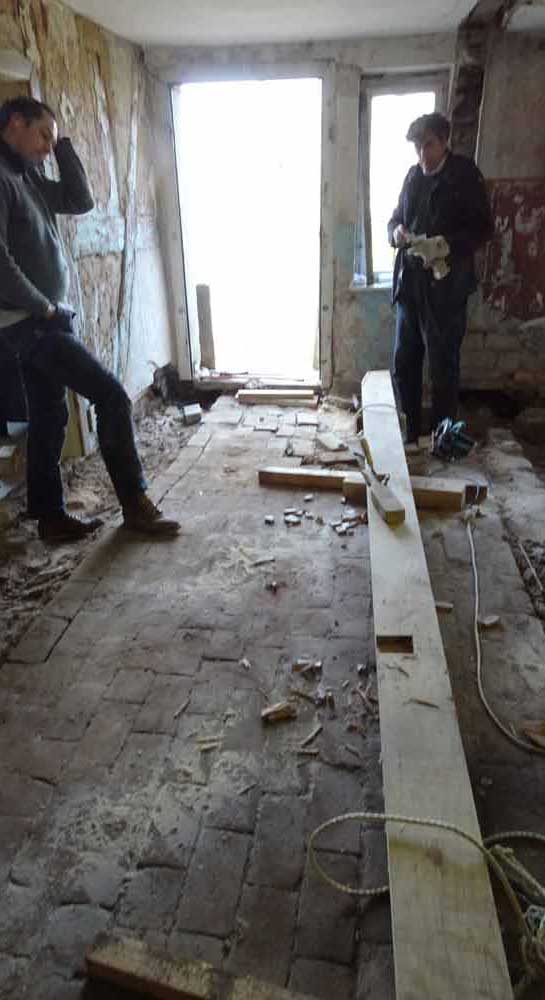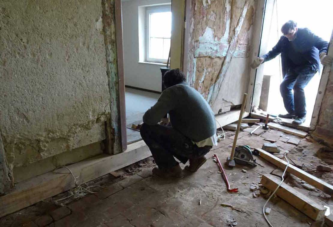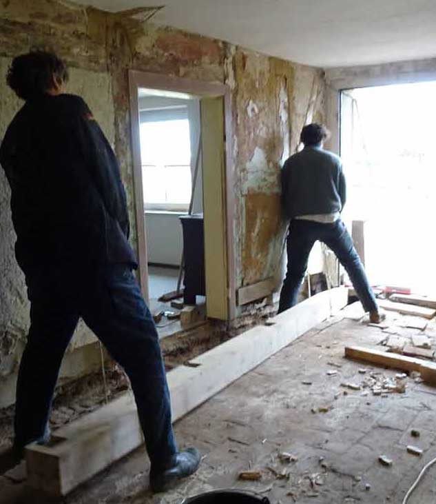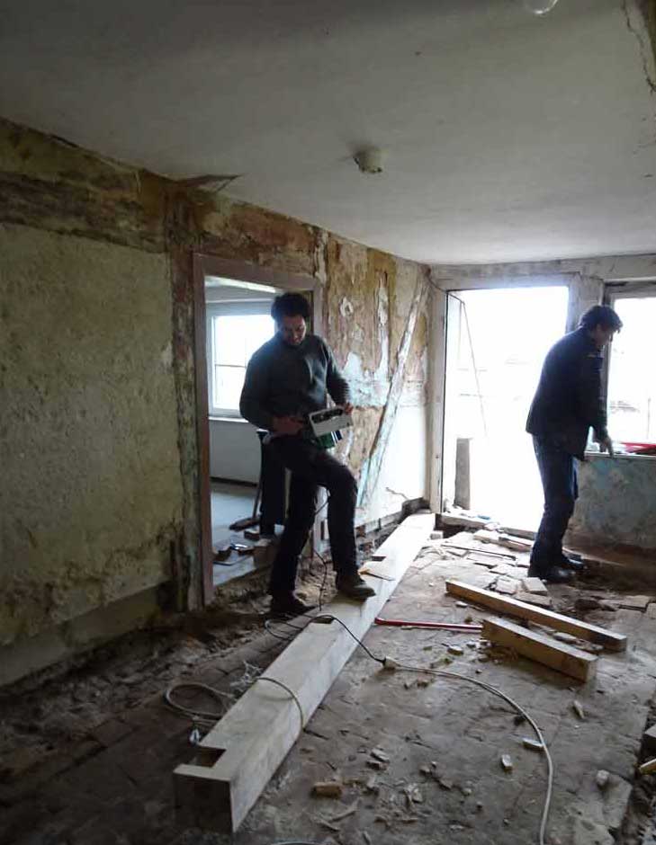 Und das auch auf der anderen Seite. Alles bevor die Wände und Fuss-Böden, schon befreit vom zudeckenden Beton, und Decken, ohne Plastikdämmungen, drankommen. Mit Türen neu aus massivem Holz..