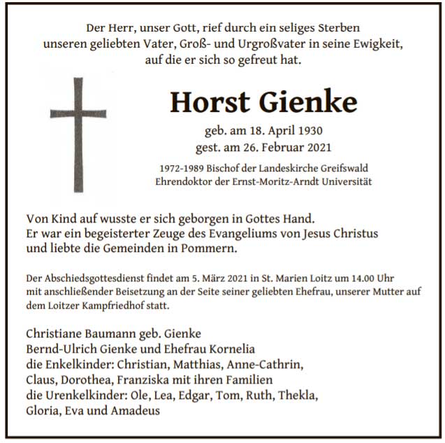 Geplant war das Fällen des Turms von St. Bartholomaei aus Greifswald freigegeben. Honecker zu Ehren als Geschenk, von ebem diesem Freund aus der Kirche damals im Programm "eine sozialistische Stadt braucht keine Türme" den Plattenbauten gemäss, das Einzige was nach 45 übrig geblieben. Befreit nun endlich ganz.