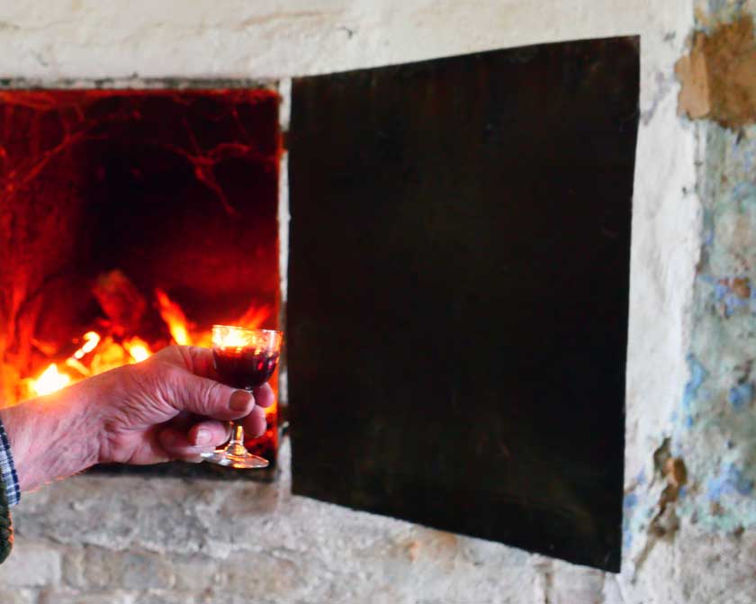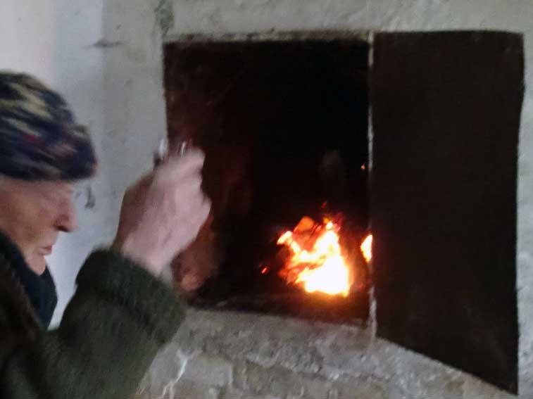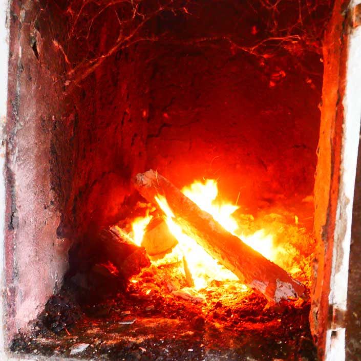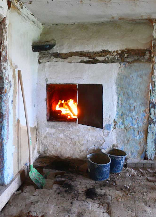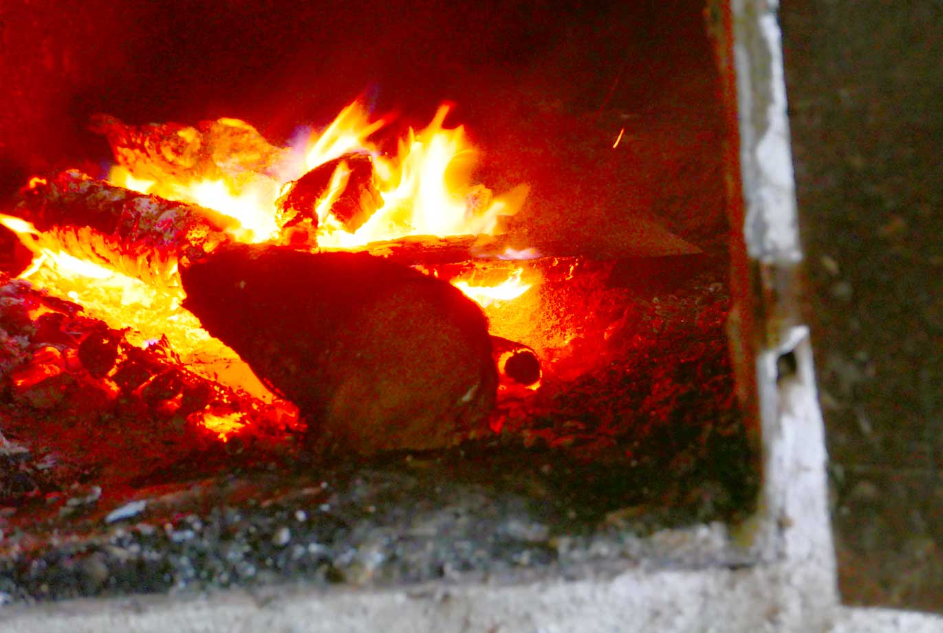Der alte Kamin , die Feuerstelle, die Esse wieder in Betrieb.