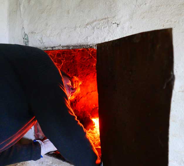 Der mit der Hand gesetzte alte Herd wartet schon.