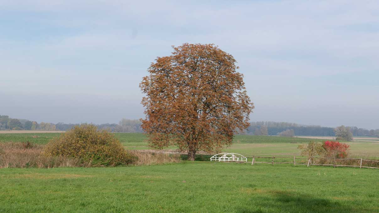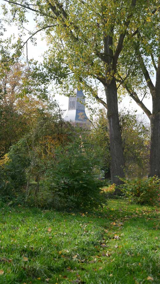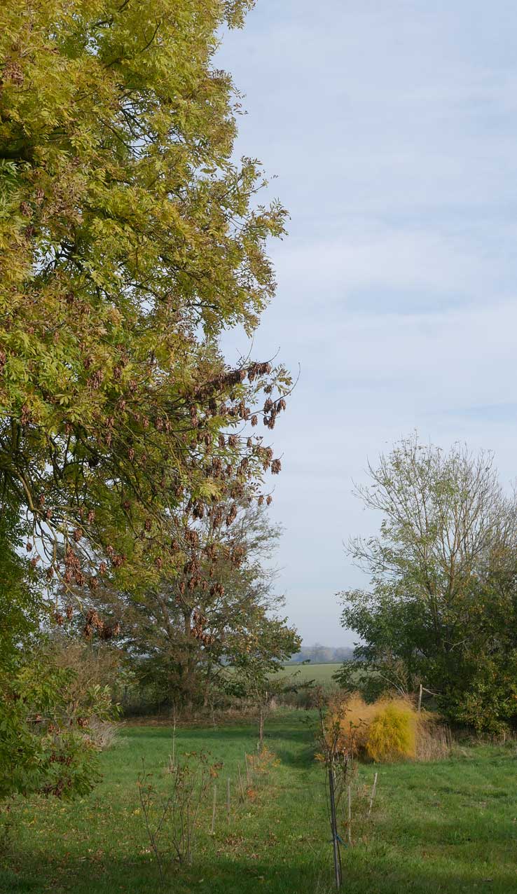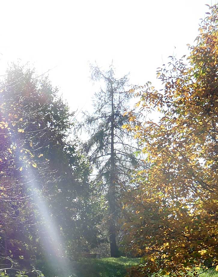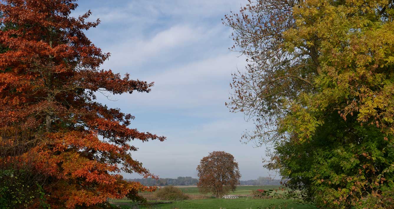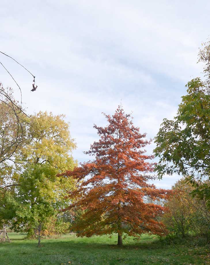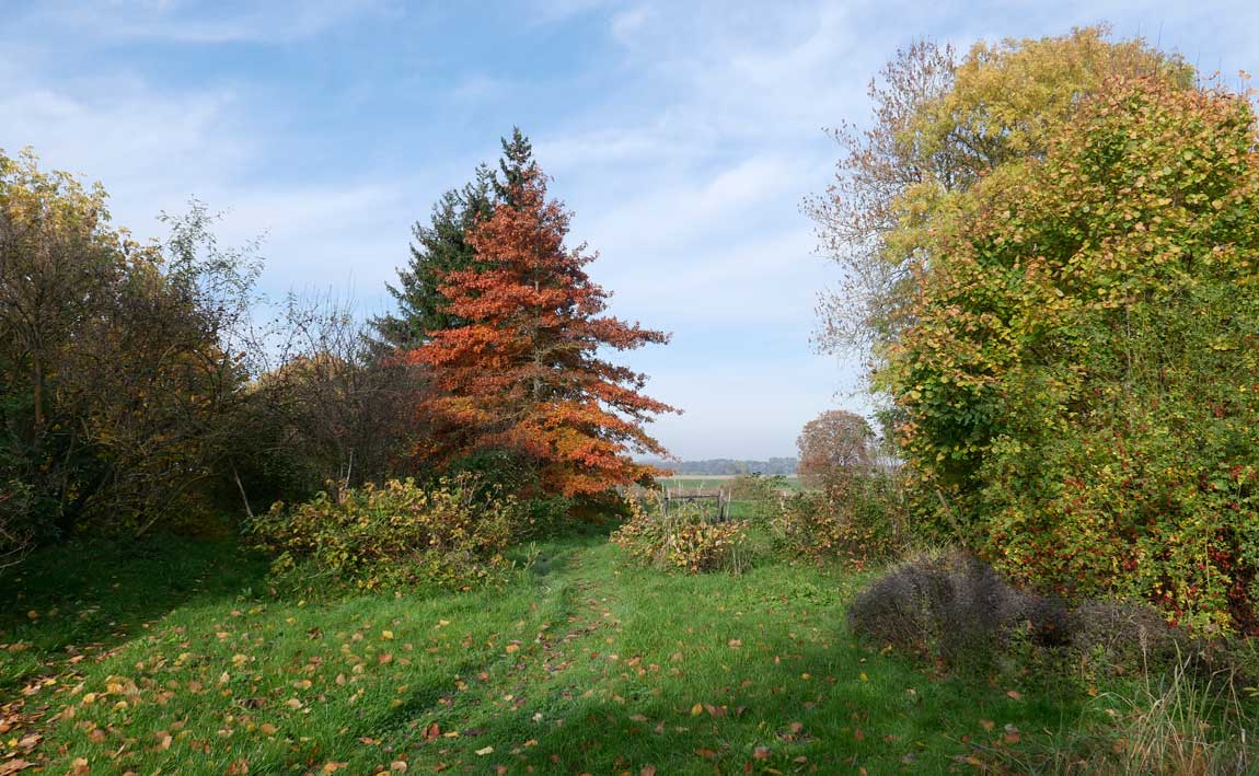 Und so seien uns zu dem neuen Rot der Sumpfeiche das alte Blau erlaubt von weither.