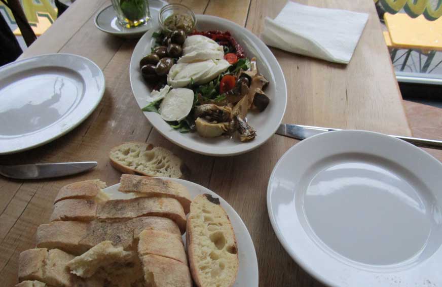 Und Mozarella von den Weiden in Pästrum, wo wir 1954 waren, am heiligen Ort, die Morgensonnen in Schlafsäcken erwartend.