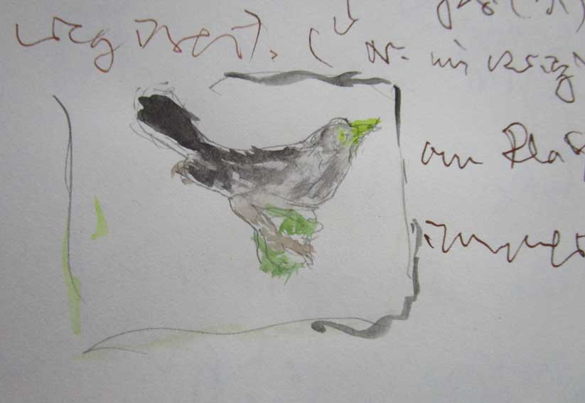 Am Bahnhof alles nach Plan, aber die Ankunft 20 Min. zu früh mit Th.Bernhards Frost die Masken-Menschen mit den Koffern hinter sich ziehend: Das Geschriebene real geworden.