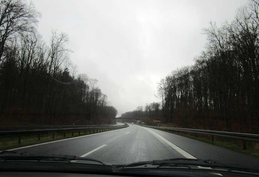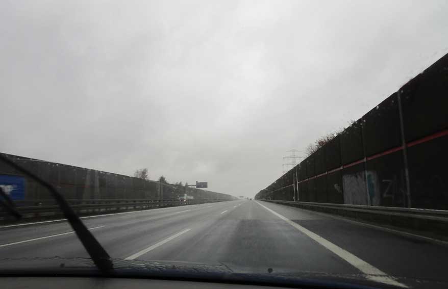 dass die erzwungene Autobahn jetzt selbst bei solchem Regen wie Erlösung erscheint