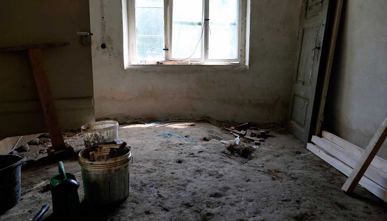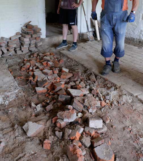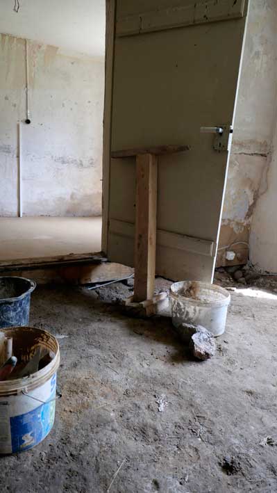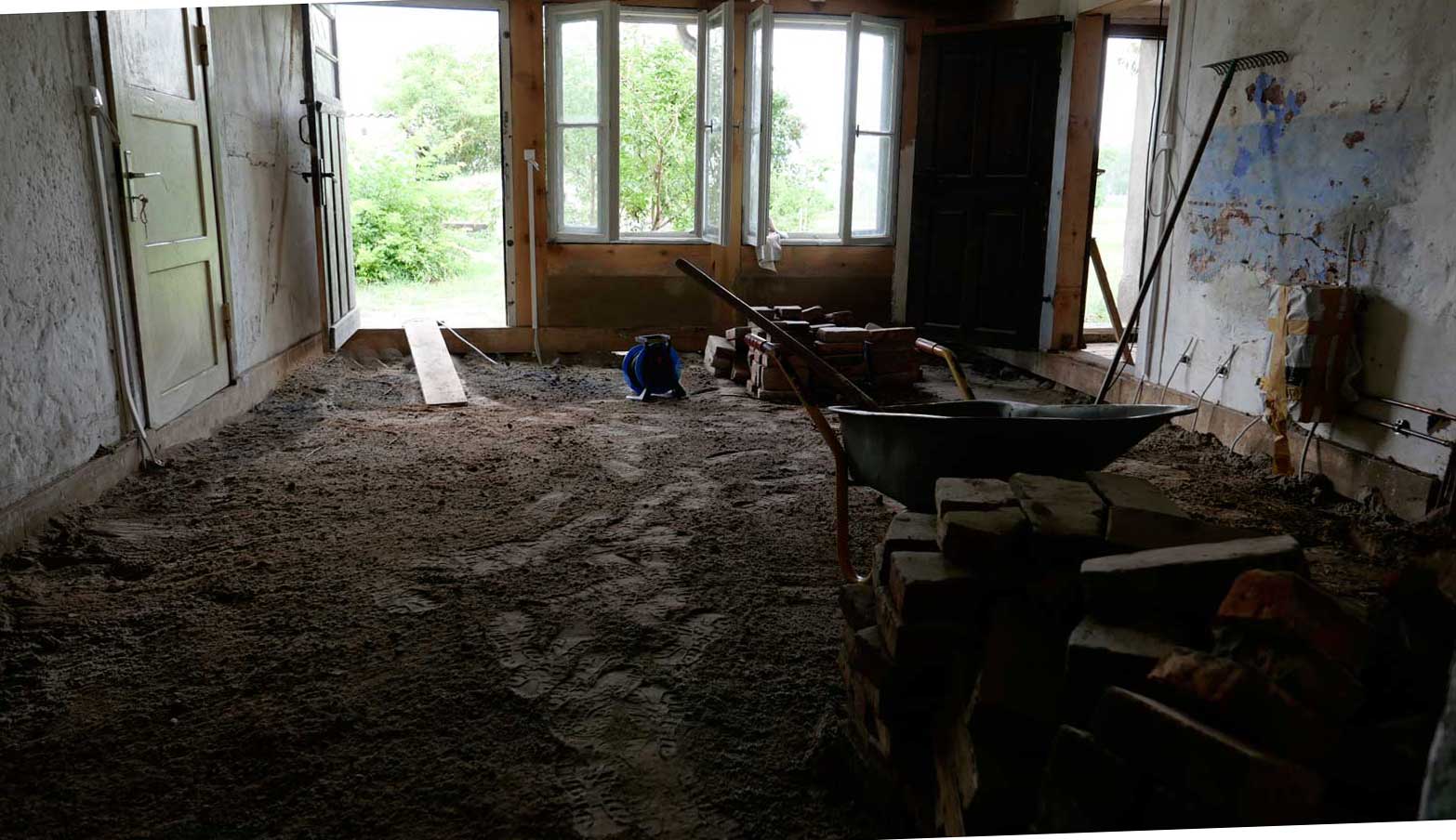 was vor kurzem noch die neue Fenster-Wand erhielt, wird nun zum Raum auch durch einen einheitlichen Grund und Boden. Erekenntnis auch, da war mal der Stall im Haus.