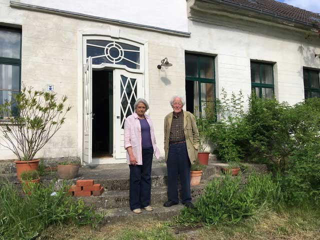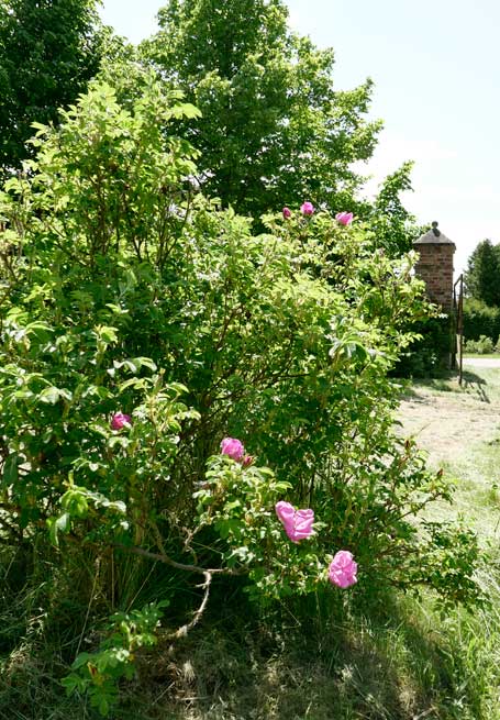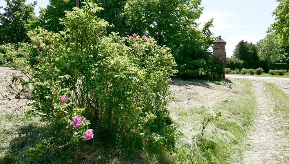 vor dem Haus nun wieder . Mit der neuen-alten Tür. Aus Wien nun .Am Tag als hier alles durchgemäht wurdequer zu gehen, nicht nur längs in Richtung Graben den nun verrohrten von der LPG versteckt ohne den Verlauf sagen zu können wo und wasdas Rohr, das sie beibehalten wollen auch gegen jede technische Möglichkeiten der Reinigung einfach so dies alles wieder weghaben zu wollen, dass nichts hineinwächsten unten-oben alles weg, DDR-Logik. Nach über 30 Jahren. Die Erben.Weghaben was hier inzwischen wieder gewachsen ist wie seit Jahrtausenden an den Gräben der letrzten Eiszeit Endmorenen Landschaften der geol. Kulturen.Im lichten Schatten wo das Denken leichter wirddass die Bäume wachsen dürfen, ihrer Natur gemäss , nicht hochgeschoren und entstellt, wie Tiere und Äcker, und das wovon wir leben - sollen.Der neue Weg der Rosen am Tage nun des Sommersund so die Einfahrt Rosen geleitet