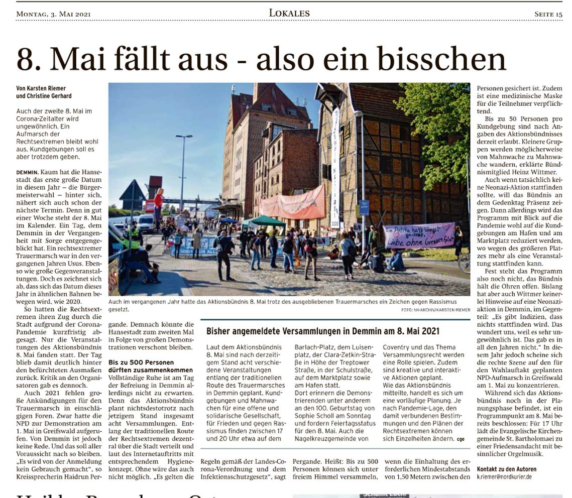Schades, dass die Kirche in Demmin immer noch nicht verstanden hat, dass das Datum der Andach Anfang Mea sein muss