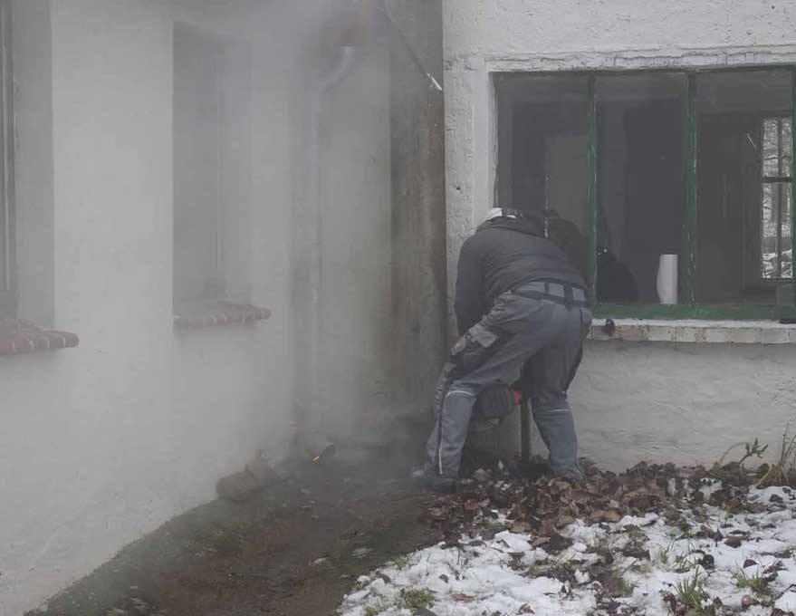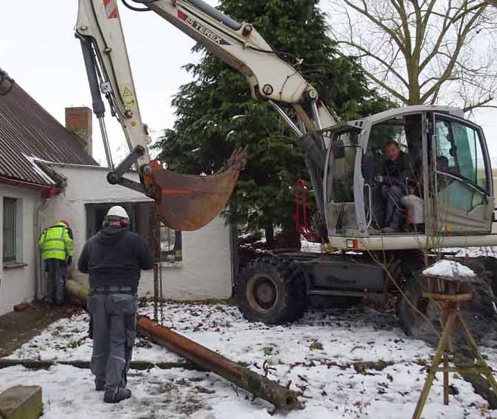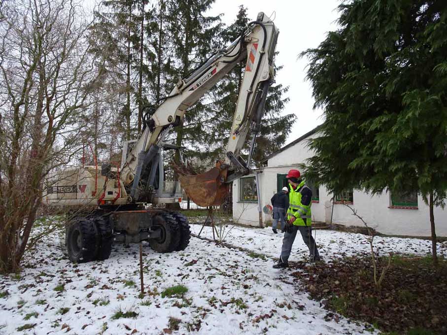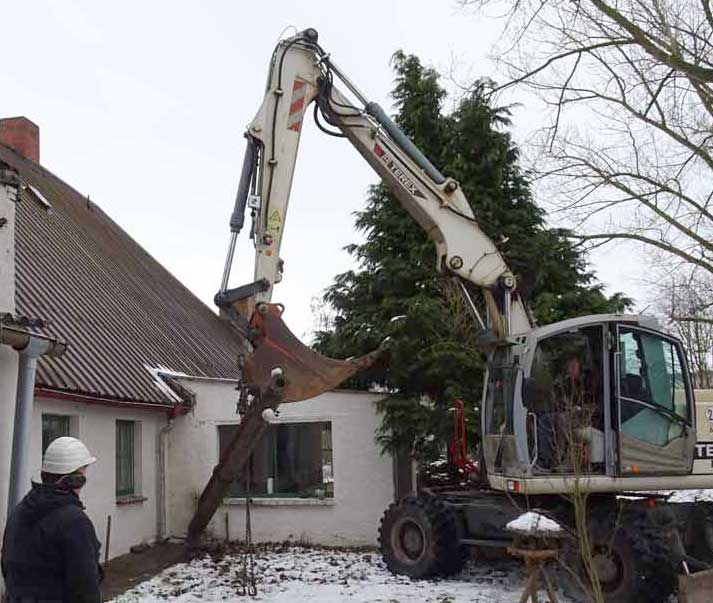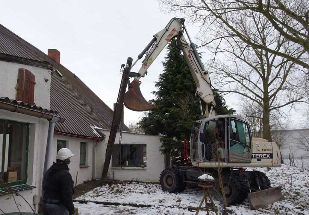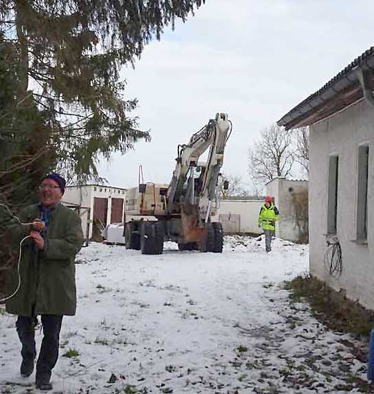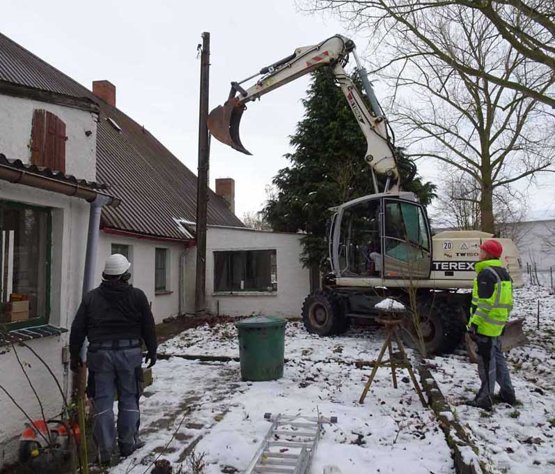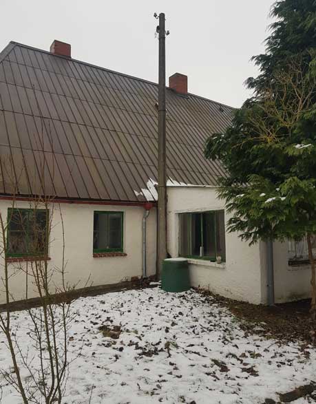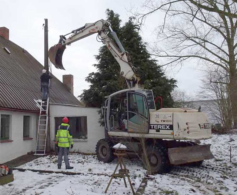 wie kam es zu diesen externen Masten vor dem Haus statt anbinden an dieses selbst ohne oben hervorstehende Wände im tiefem Dach herab, aber Giebel aber hinter Bäumen. Es war wohl der Mast der Fahnen als Modell, nun die anderen Energien. Und in Beton. Also weg damit.