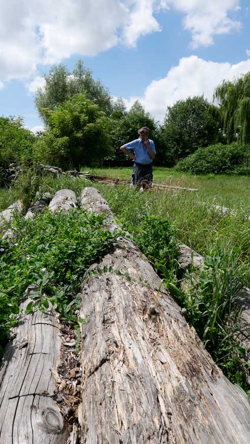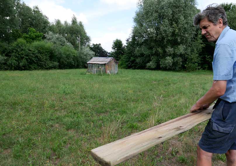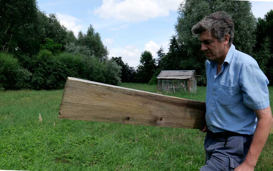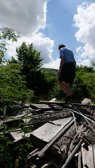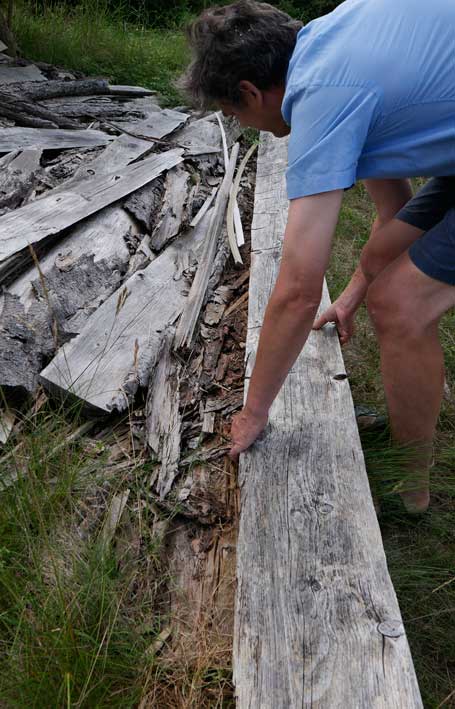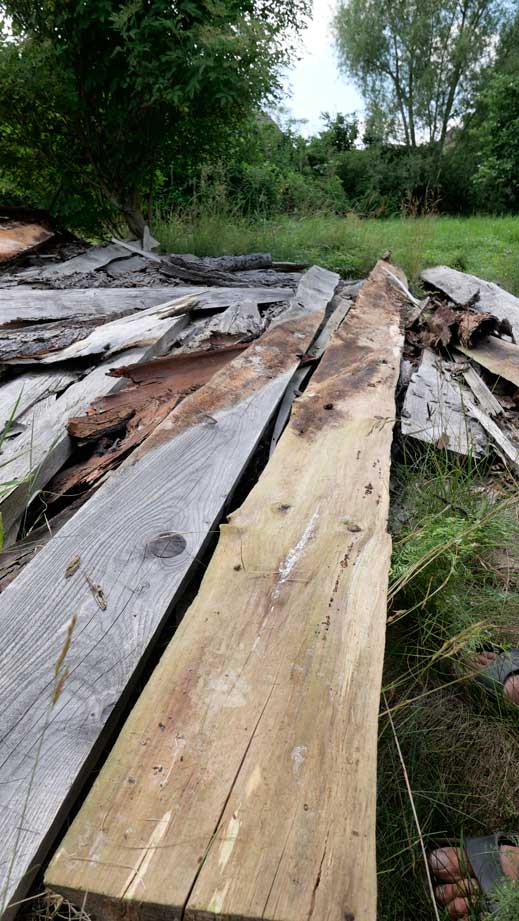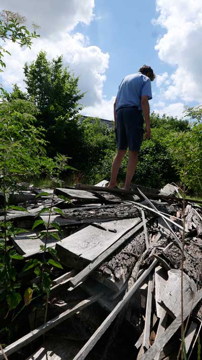 das verbliebene Holz vom Turmbau an der Kirche lockt