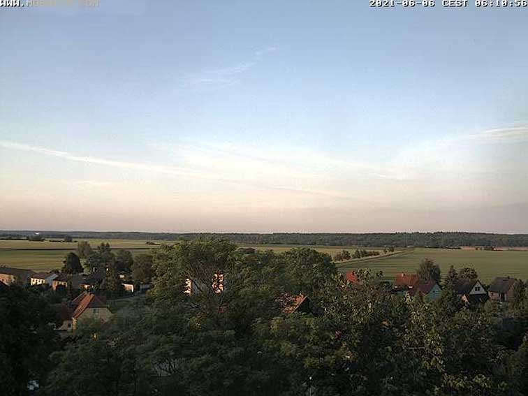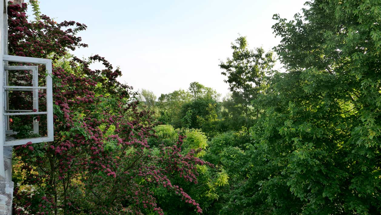 Auch wo sonst die Störche ihr Nest hatten, ist nun alles aber grün. Und des Morgens froh.
