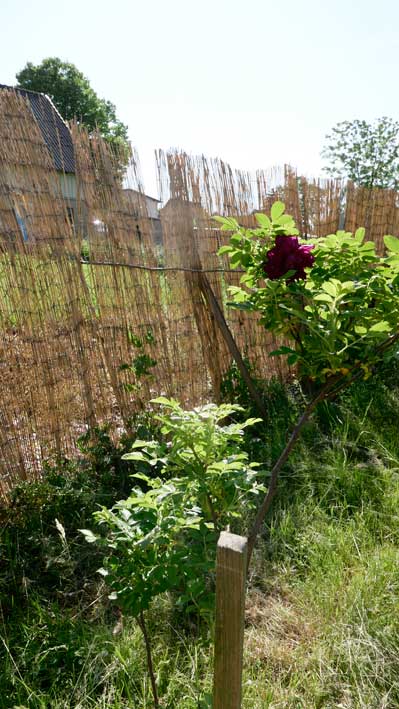 Erste Rocen blühen von den neu gepflanzten an der Grenze zum Dorf. Die sie einmal werden soll zusammen und hoch.