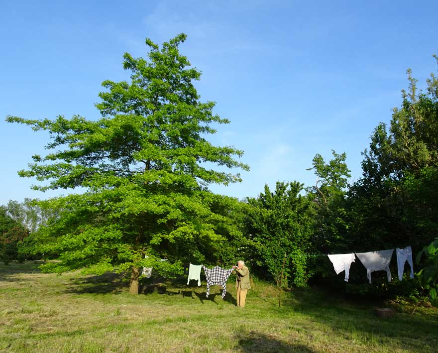 Die Wäsche aber unter der Eiche, die es noch sein darf. Mit Zweigen wie sie wächst. Tief herab. Geachtet.
