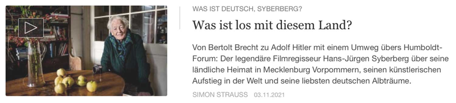 3 Erfahrungen mitbrachte aus der Zeit vor 45 und was dann folgte, als Leben in Ost Schulen und West Universäten, dann alles in Filmen und auf den leeren Bühnen, hier der Monologe einer Frau, als Bücher inlusive. Und nun im Internet 20 Jahre täglich wieder am Ort, wie von Anfang an, von da hinten und weit draussen. Unter denen dort. Immer mit dem Blick nun nach draussen und mit der Ernte dieses Lebens.