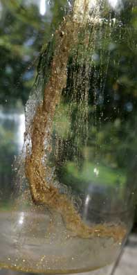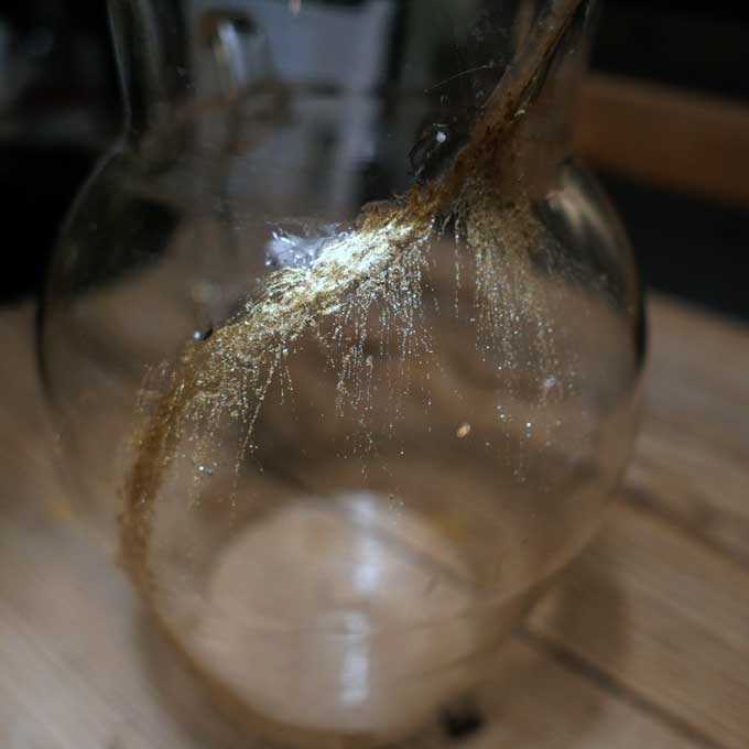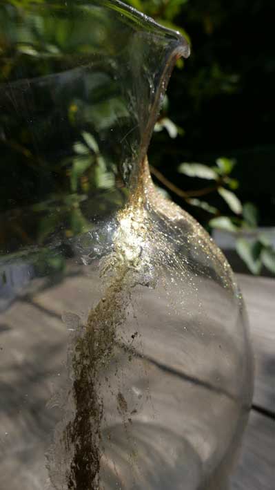 Den durch feinen Haar-Riss von oben bis unten gesprungenen Krug, als Vase dienend, wieder zu schliessen