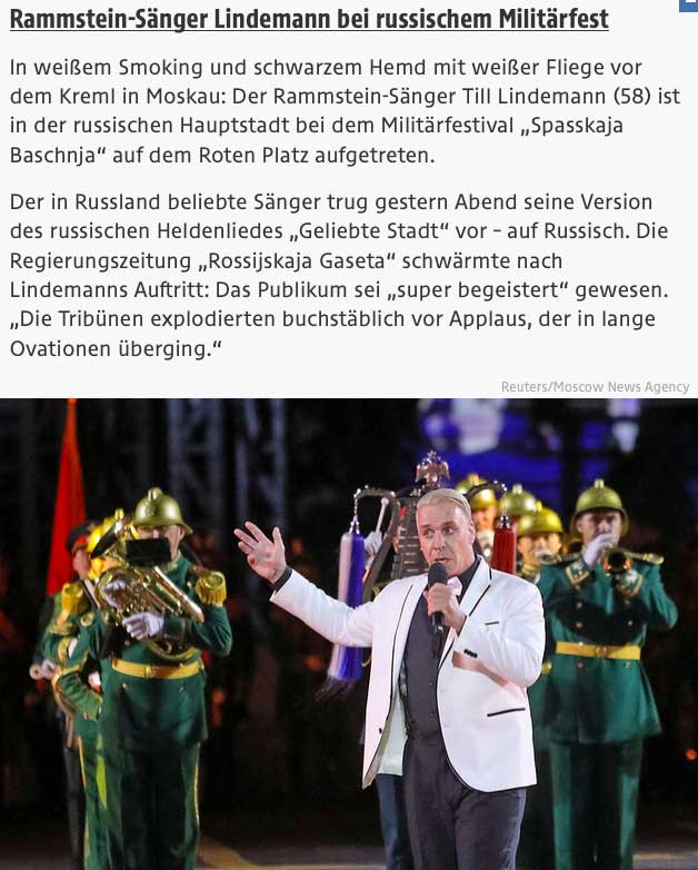 Das aktuelle Video singend unter den Uniformen auf den Roten Platz kriegen wir nicht, wohl Rechtefrage.
